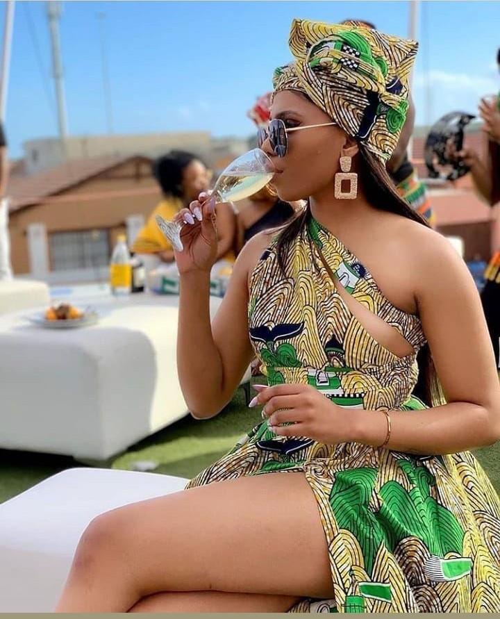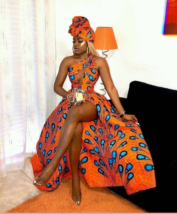 Elevate your look with a cape-overlay Ankara gown that evokes regal presence. The cape drapes gracefully, creating a dramatic and captivating silhouette.