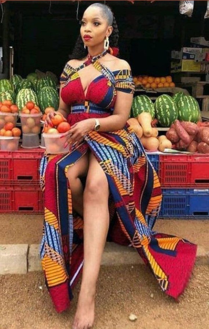 Combine African elegance with lace details in a high slit Ankara gown. This fusion of fabrics adds a harmonious blend of tradition and modernity.