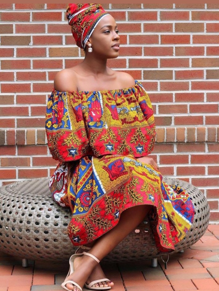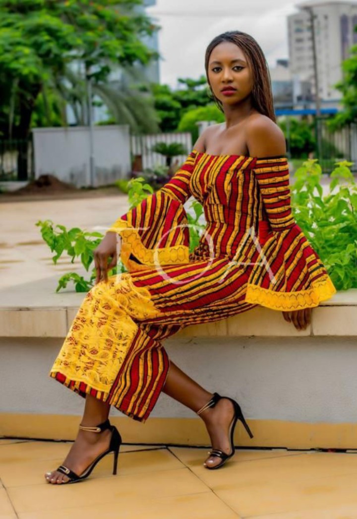 Capture modern sophistication with an off-shoulder Ankara jumpsuit that balances style and comfort. The off-shoulder neckline adds allure to this chic ensemble.