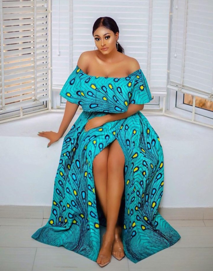 Drape yourself in sophistication with an embellished Ankara robe dress. The intricate beadwork and embroidery add depth and visual interest.