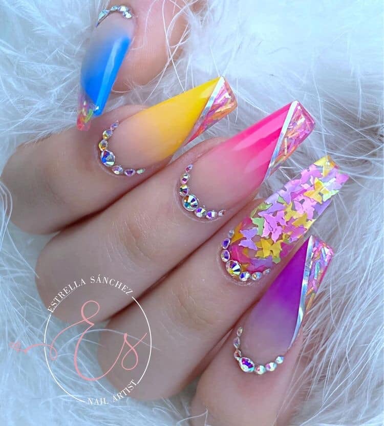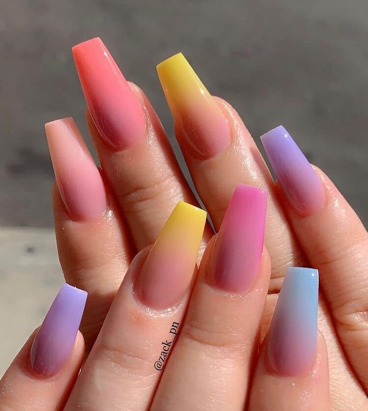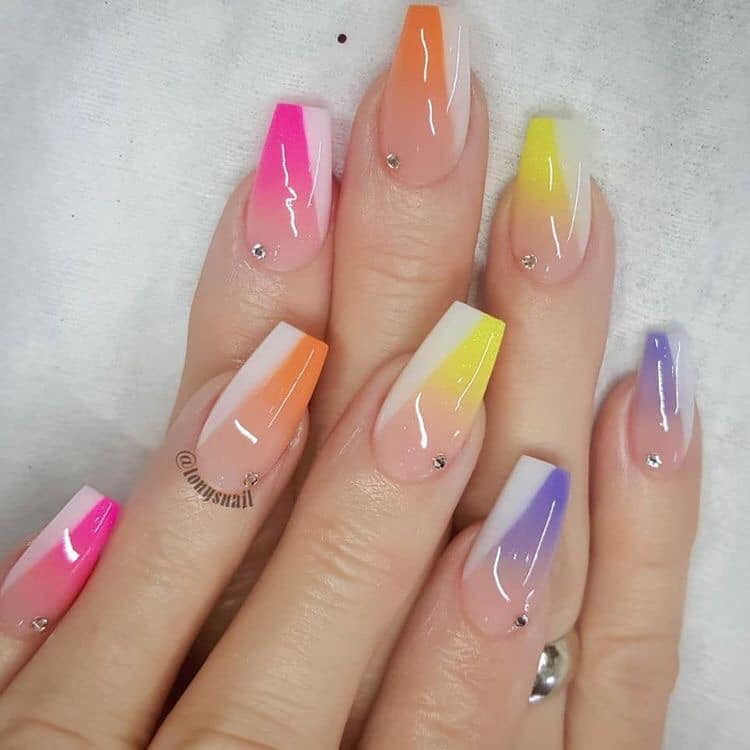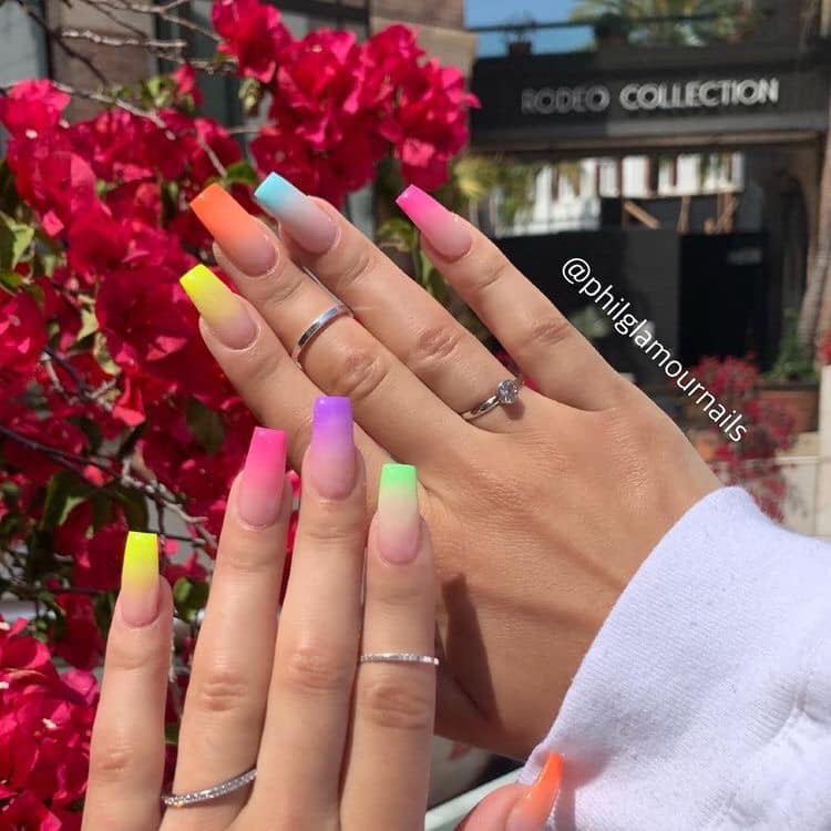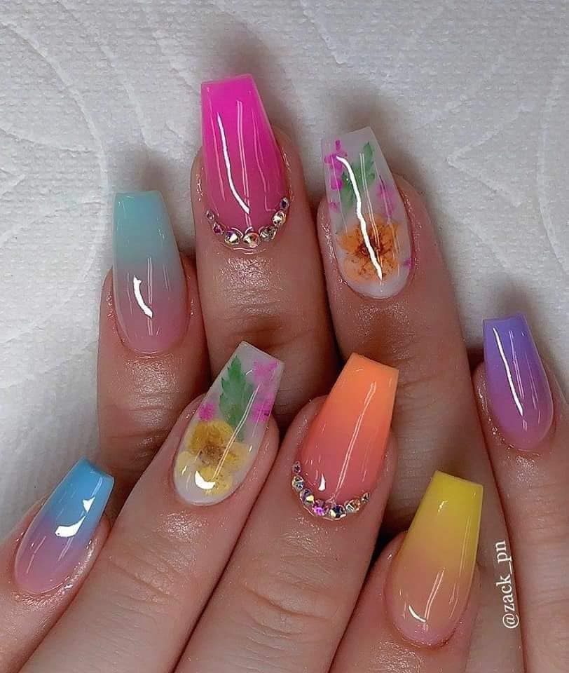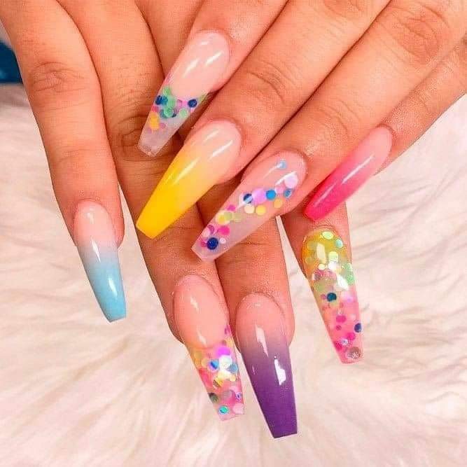 30. Rainbow Nails: A playful and colorful combination of different shades that creates a vibrant and cheerful look.