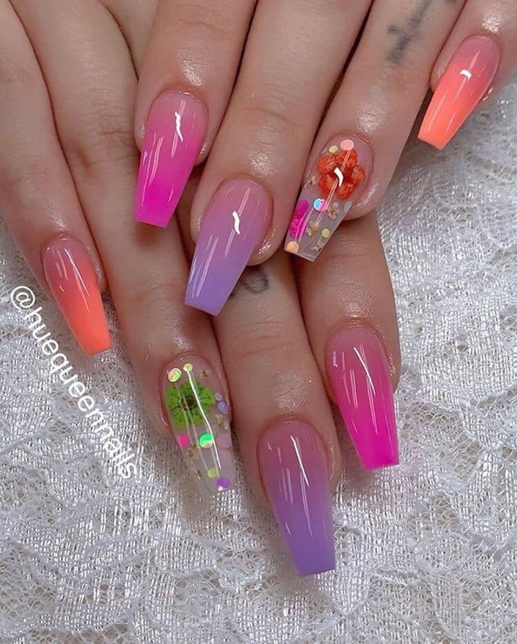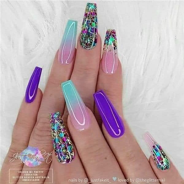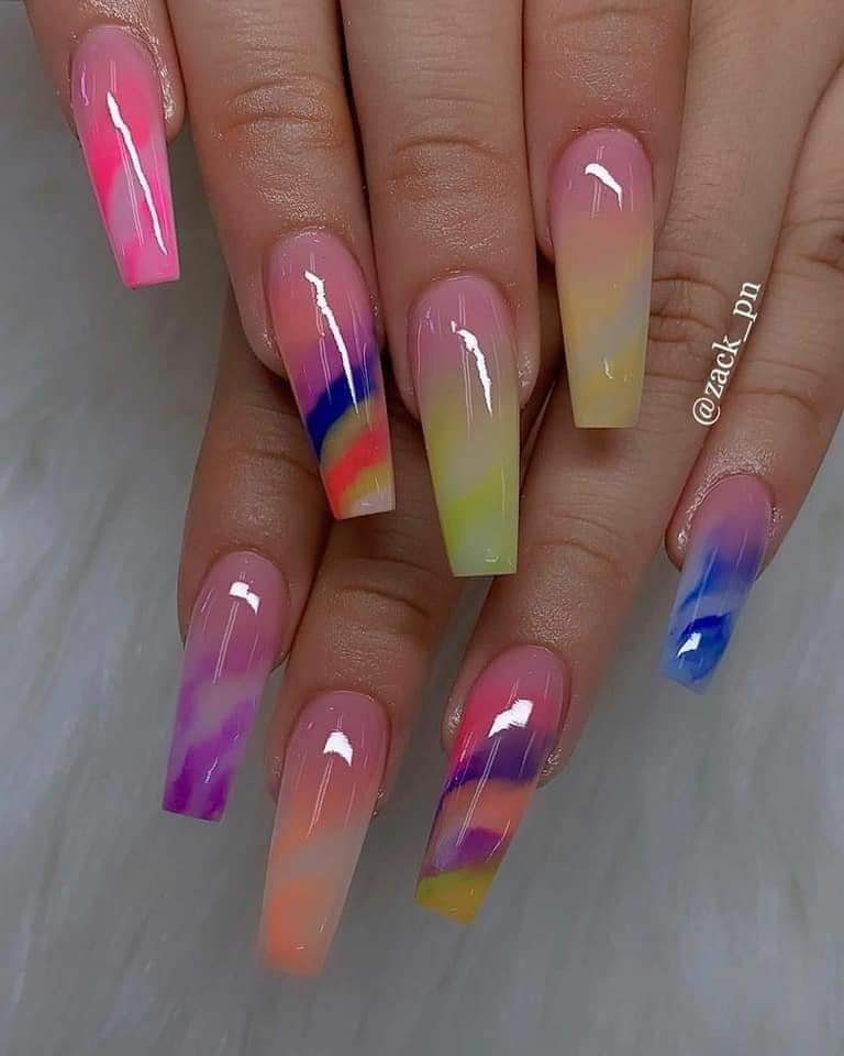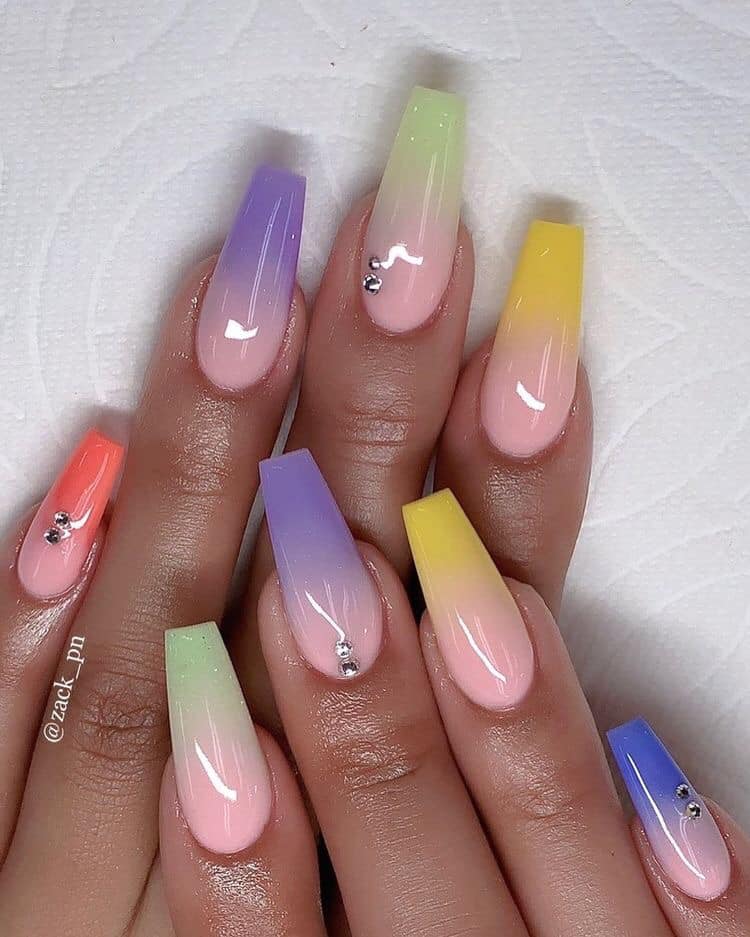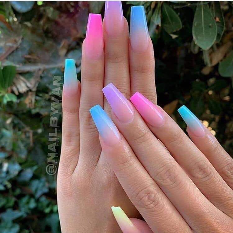 30. Rainbow Nails: A playful and colorful combination of different shades that creates a vibrant and cheerful look.