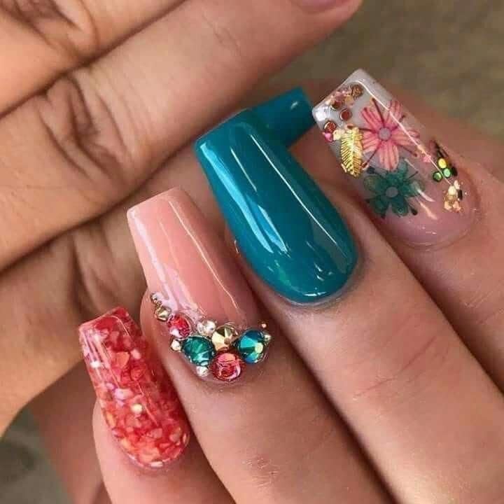 26. Teal Nails: A deep and rich shade of blue-green that is both elegant and sophisticated.
