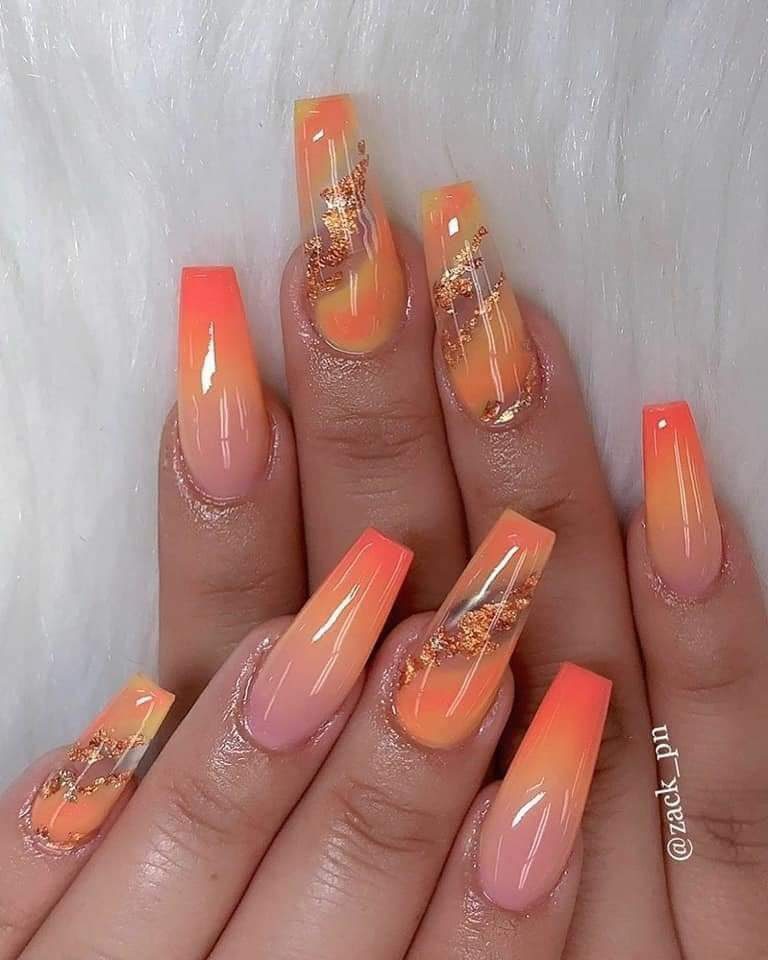 21. Coral Orange Nails: A bright and energetic shade of orange that adds a pop of color to your nails.