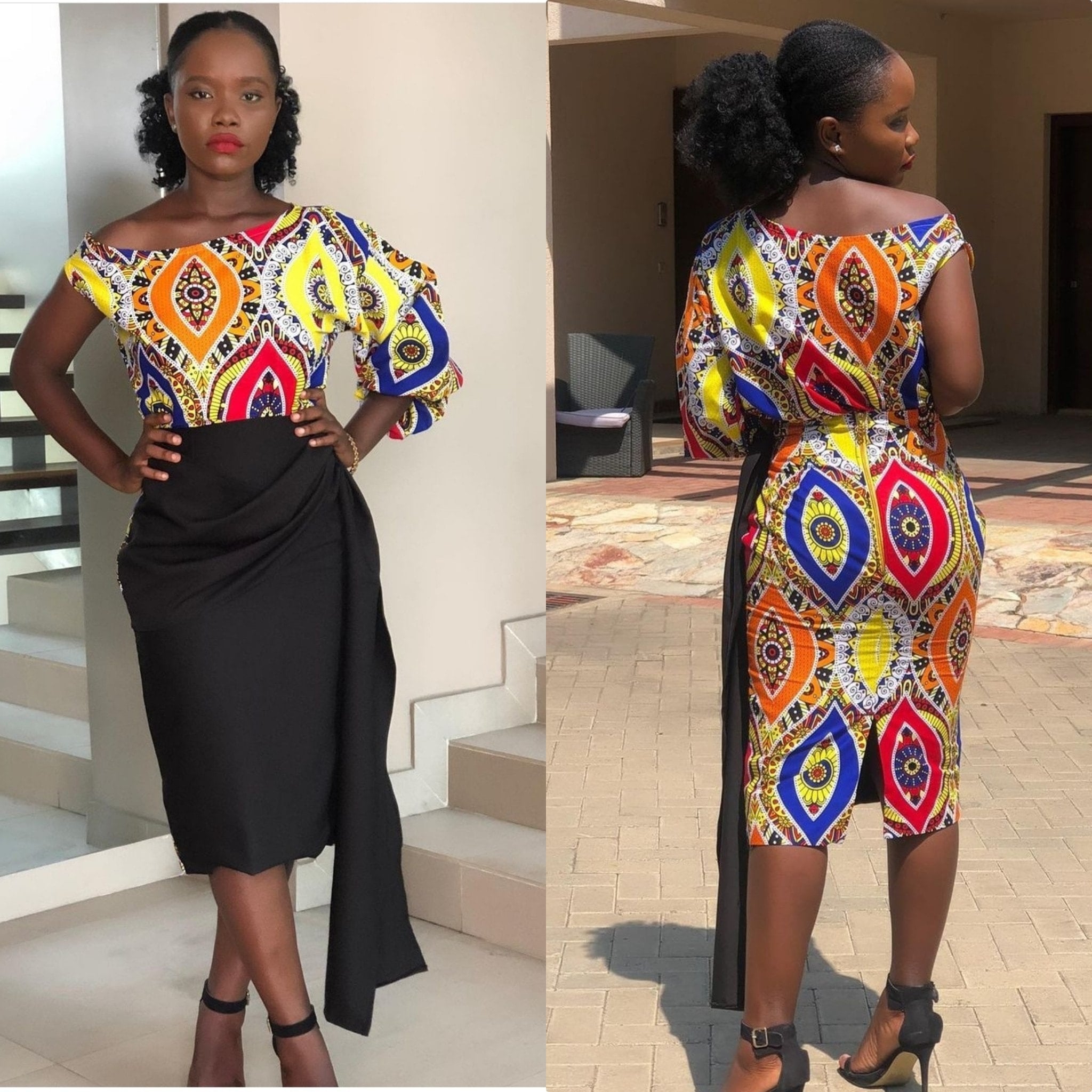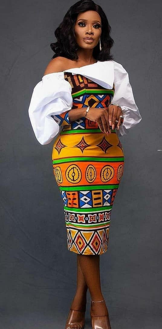 9. Ndebele Print Off-Shoulder Dress: An off-shoulder dress showcasing Ndebele prints.