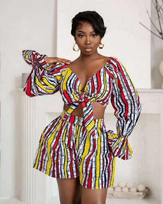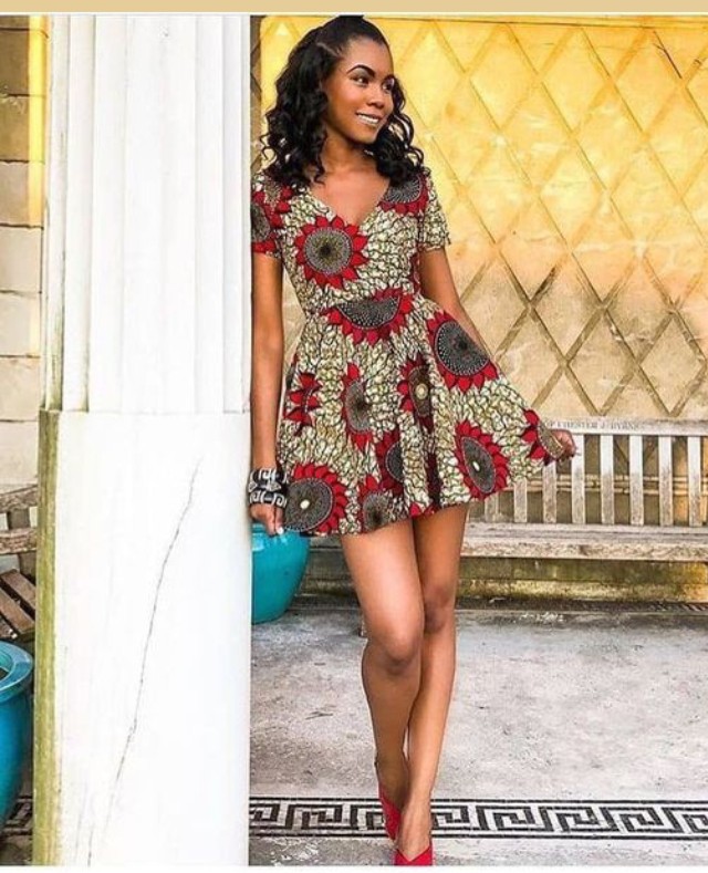 4. Wrap-Style Short Dress: Flaunt sophistication with a wrap-style Ankara short dress. The wrap design enhances your figure while adding a touch of elegance.