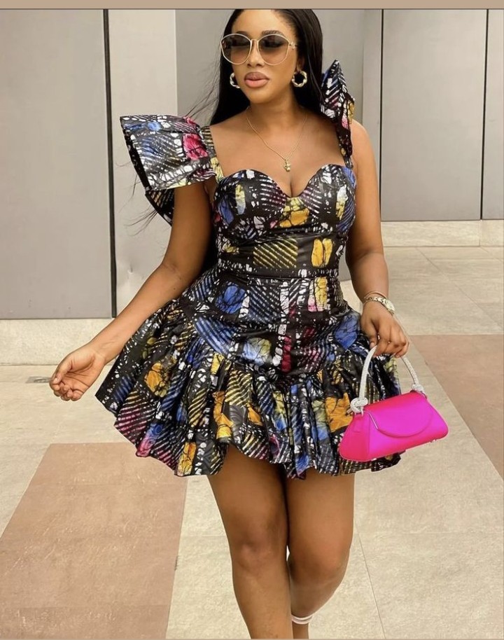 1. Off-Shoulder Ruffled Mini Dress: Opt for an off-shoulder Ankara mini dress with ruffled details. This playful and flirty design adds a touch of elegance to your look.