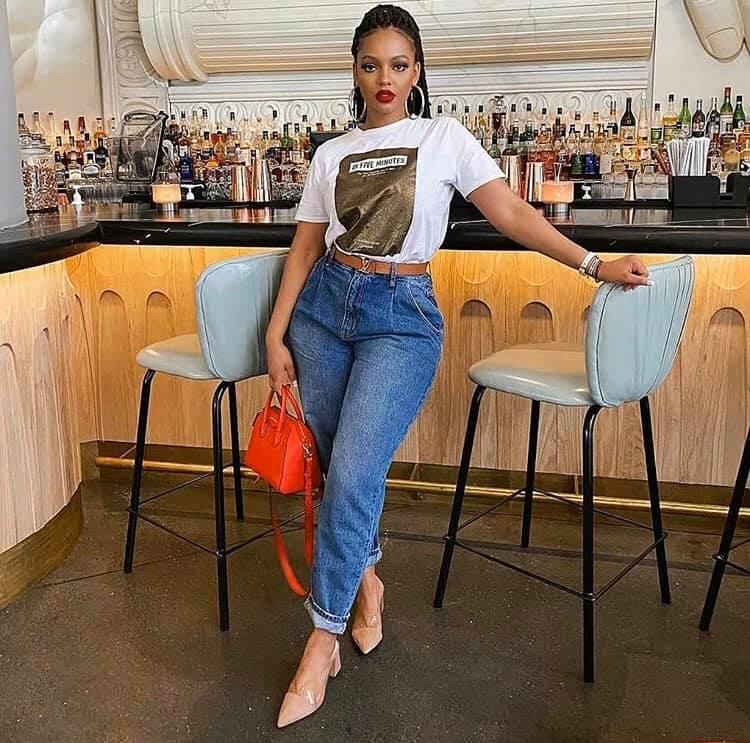 Create a relaxed and trendy outfit by pairing loose-fitting boyfriend jeans with an oversized sweater or a button-down shirt. Roll up the cuffs of the jeans and add sneakers or sandals for a comfortable and effortlessly chic ensemble.