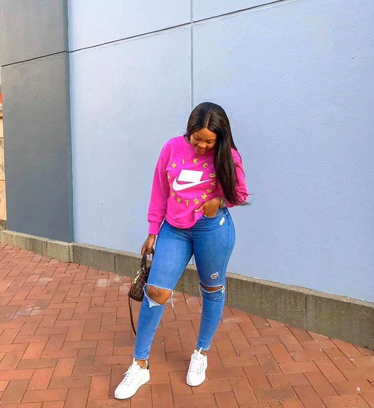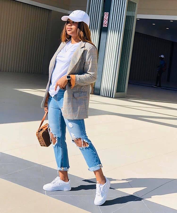 - Distressed Boyfriend Jeans: Choose relaxed-fit distressed boyfriend jeans for a laid-back vibe. Wear a slouchy oversized sweater and white sneakers. Tie a plaid shirt around your waist for added style.