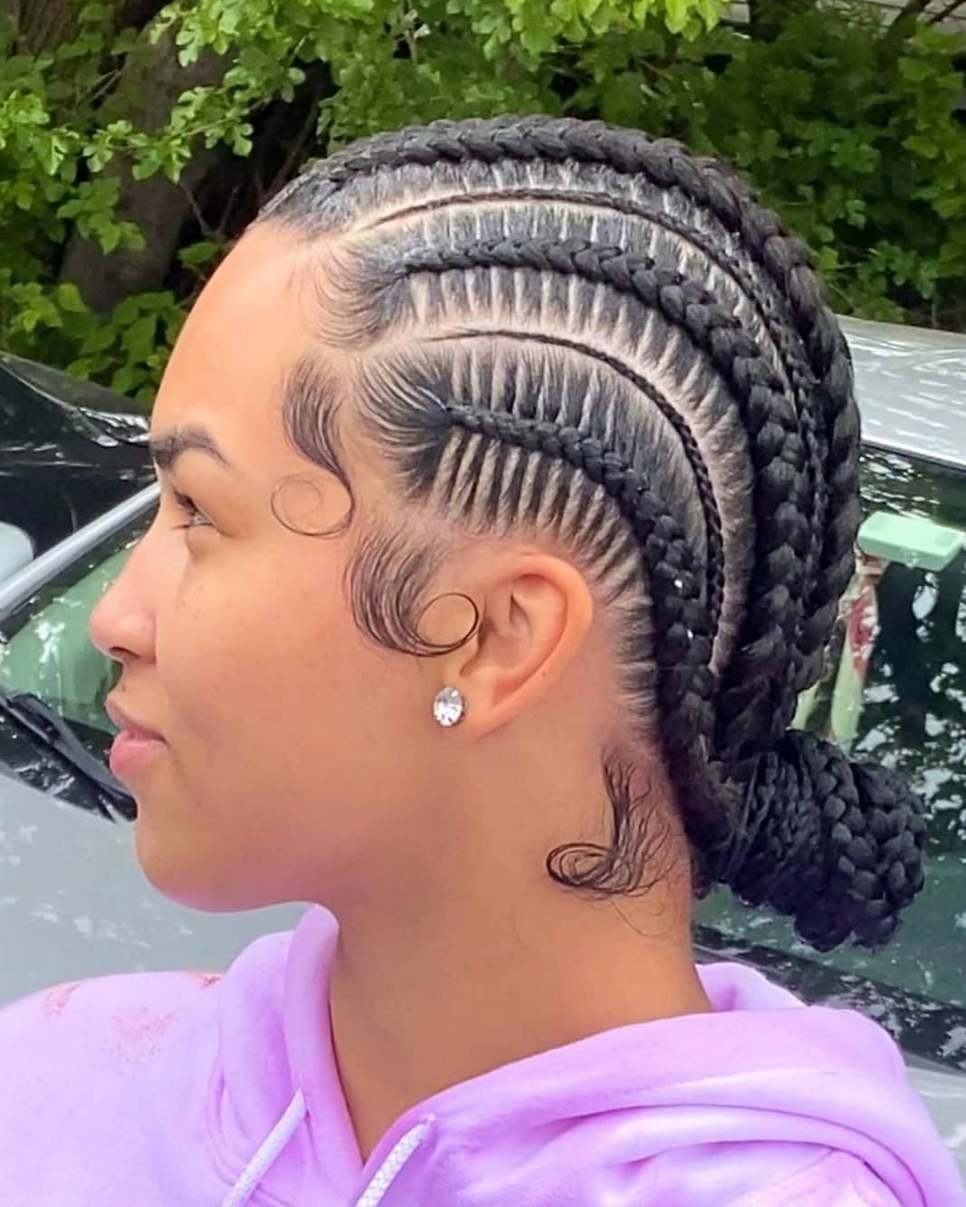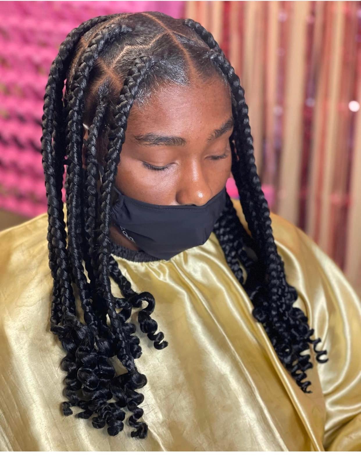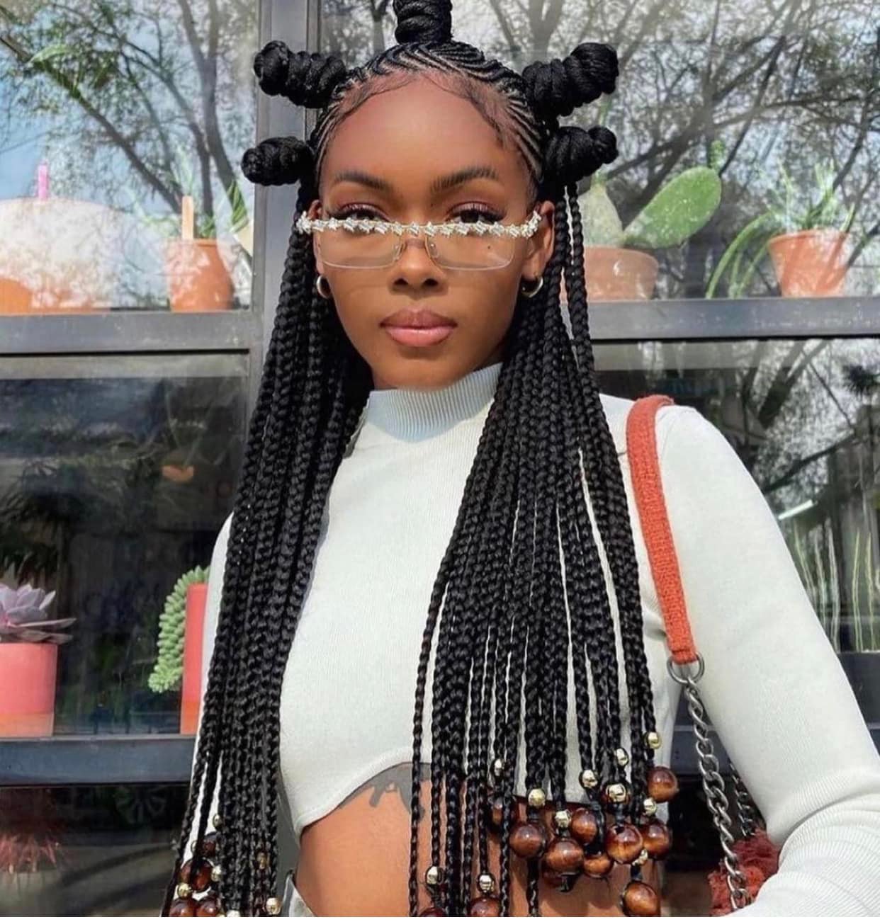 Inspired by the Fulani people of West Africa, these braids typically feature cornrows at the side, a braid down the center, and often include beads. They’re a beautiful combination of design, pattern, and accessories.