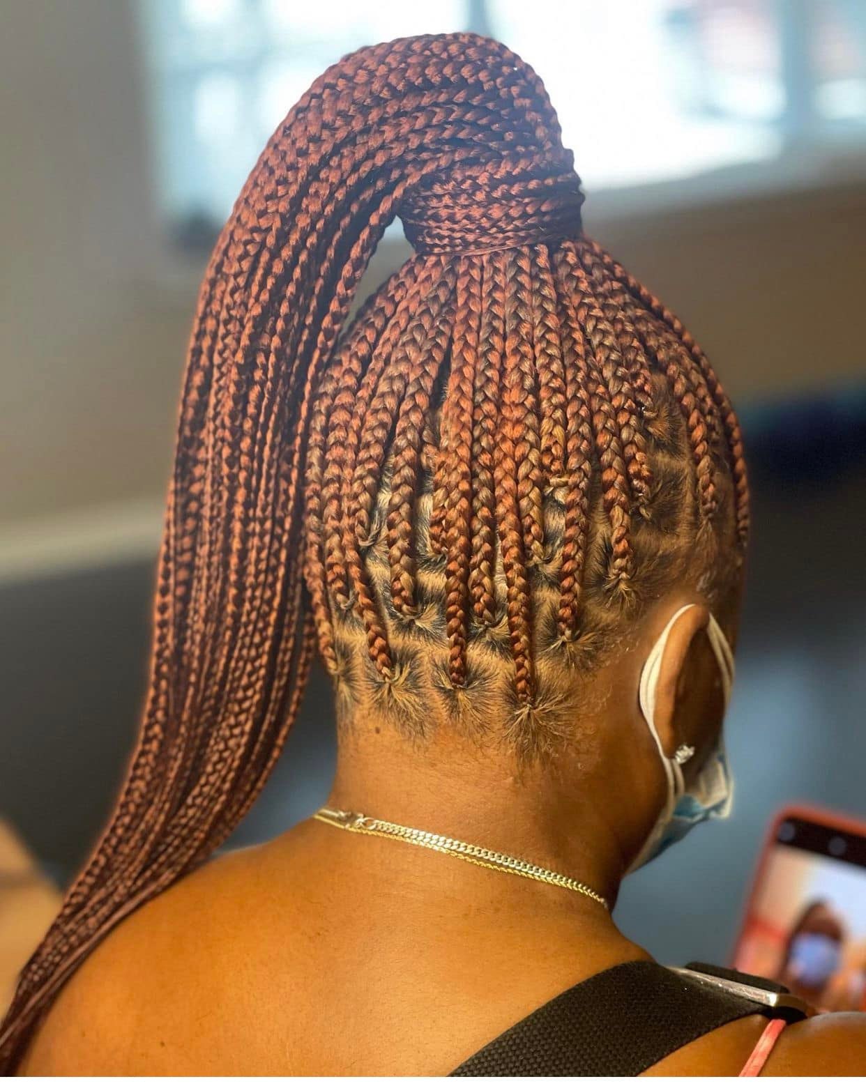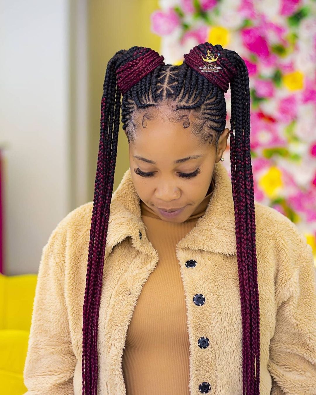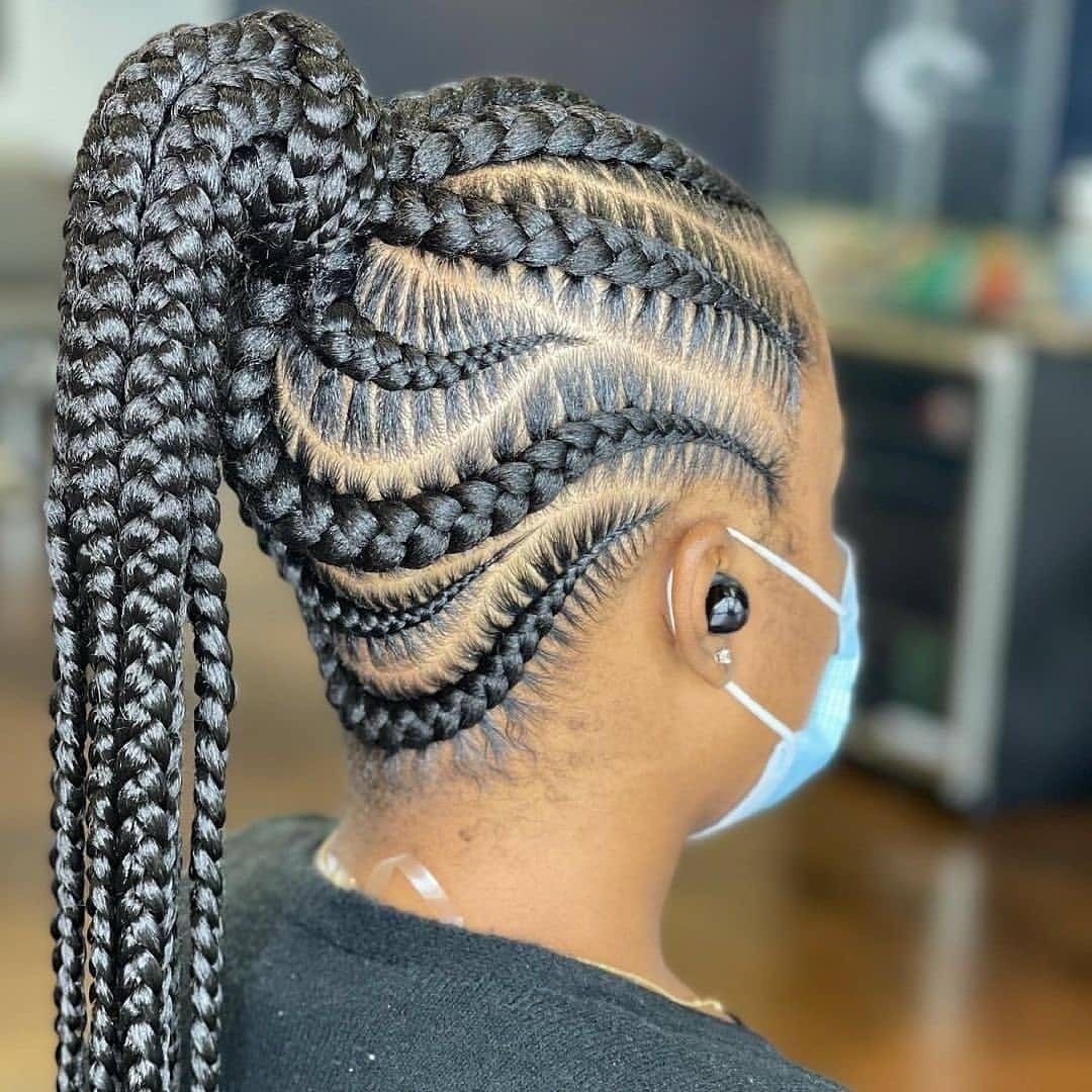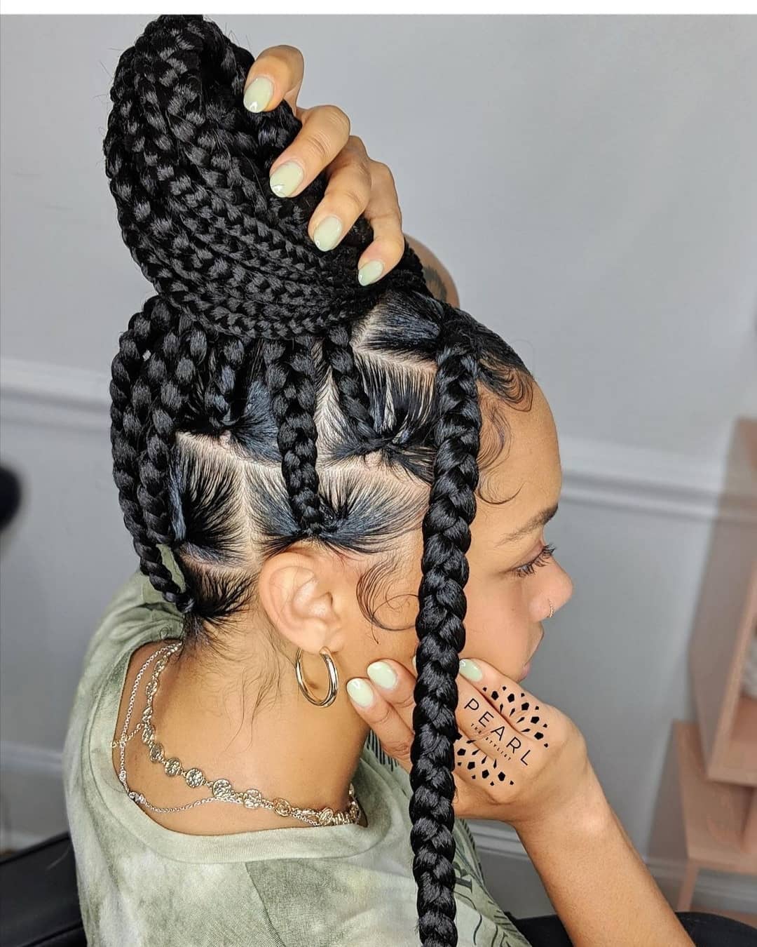 Inspired by the Fulani people of West Africa, these braids typically feature cornrows at the side, a braid down the center, and often include beads. They’re a beautiful combination of design, pattern, and accessories.