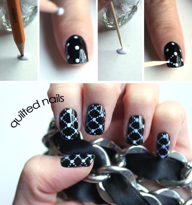 Buying nail art tools to use at home never seemed viable either. I always figured there was no use investing in dotting tools for designed nails. And all those brushes if I didn’t have the skill level to use them successfully at home. So, at a nail-art impasse, I starting experimenting with simple looks that I could pull off with random stuff lying around my house.