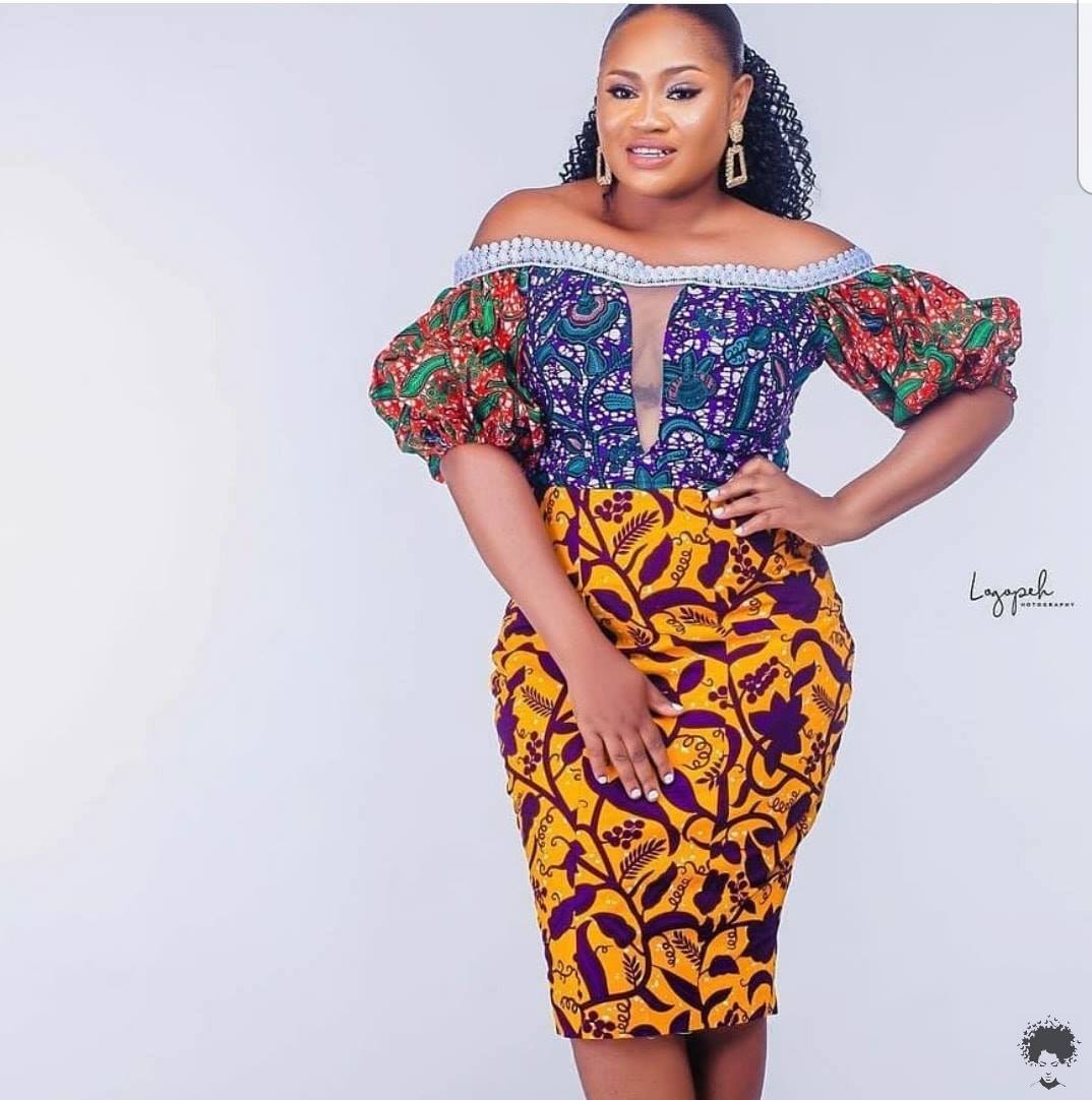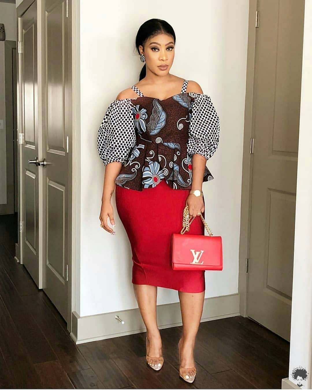Pairing an Ankara skirt with a coordinating blouse is a classic way to wear this fabric. High-waisted skirts, whether pencil cut or flared, matched with a well-tailored blouse, can create an elegant and polished look. Peplum blouses, off-shoulder tops, or bell-sleeved shirts can add a modern twist to this traditional style.