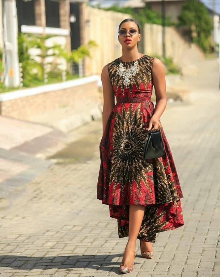 Ankara fabric is known for its bold and vibrant prints. Mixing and matching different Ankara prints can create a unique and eye-catching look. To pull off this look, choose Ankara prints that complement each other. For example, if you have an Ankara skirt with a bold print, pair it with a blouse in a smaller print in one of the colors of the skirt.