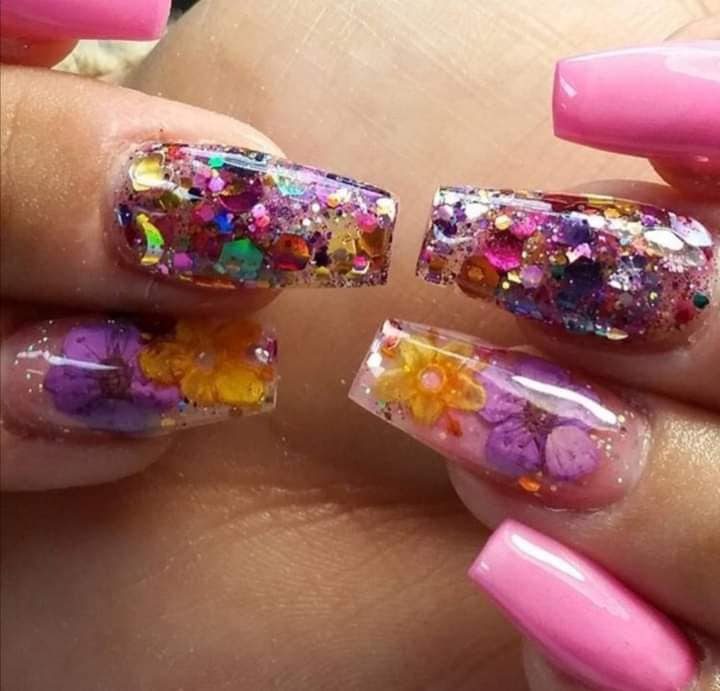 2. Glitter and Sequins: Elevate your nail game with encapsulated glitter and sequins. These sparkling particles are encased within the nail enhancement, giving your nails a dazzling and glamorous effect. Choose from a wide range of colors and sizes to create a look that suits your mood and occasion.