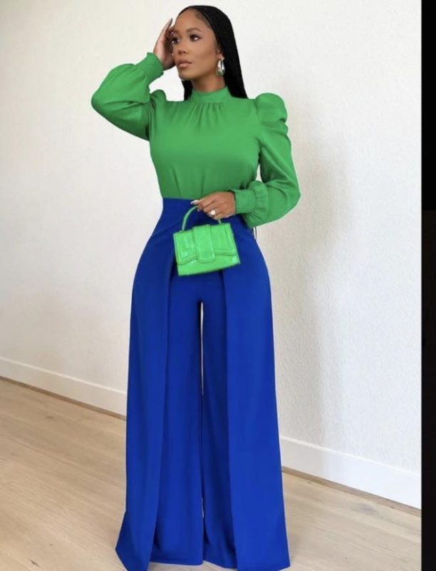 Finally, we have the cobalt blue trouser. Blue is a calming and soothing hue that is perfect for both work and play. It’s versatile and can be paired with a variety of colors and styles, making it a must-have in any woman’s wardrobe. Pair it with a simple white blouse and some nude pumps for a chic and sophisticated look.