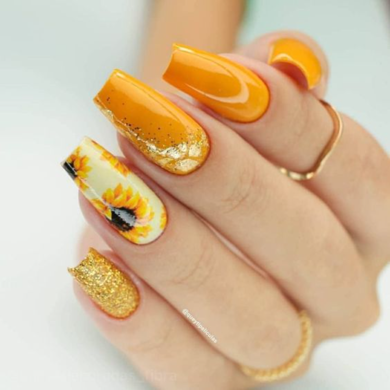 4. Mood Enhancer: Just like the actual sunflower, a sunflower nail design is bound to uplift your spirits and boost your mood.