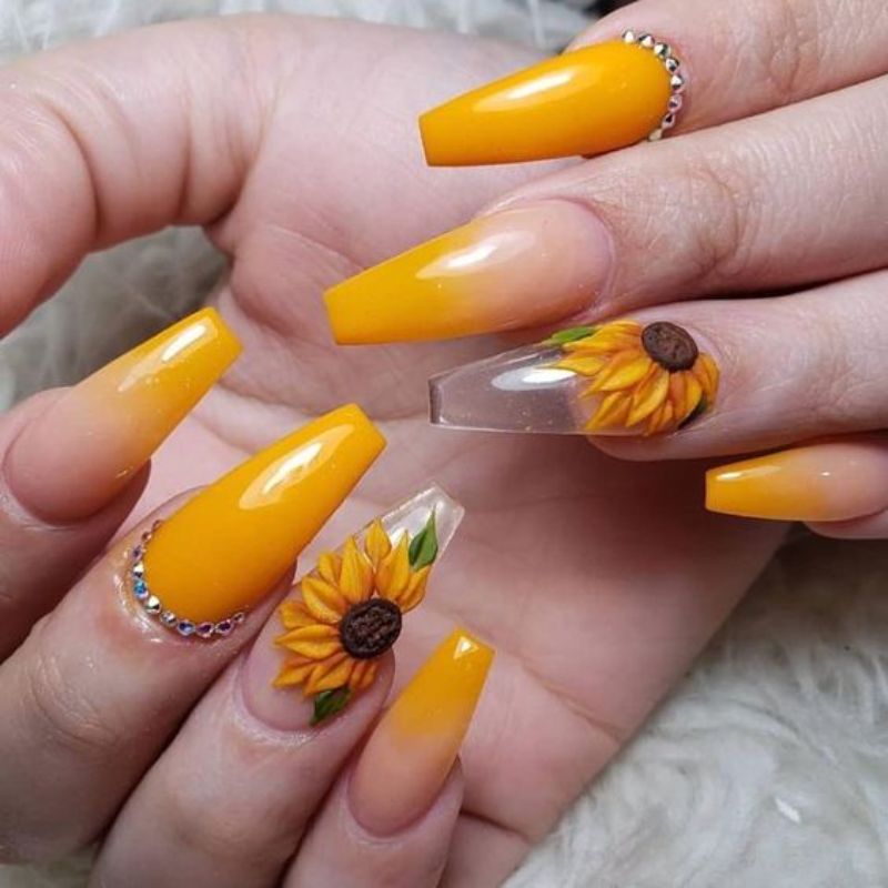 5. Perfect For All Occasions: Whether you’re heading to a beach party, a summer brunch, or simply lounging by the pool, sunflower nails are the perfect accessory.
