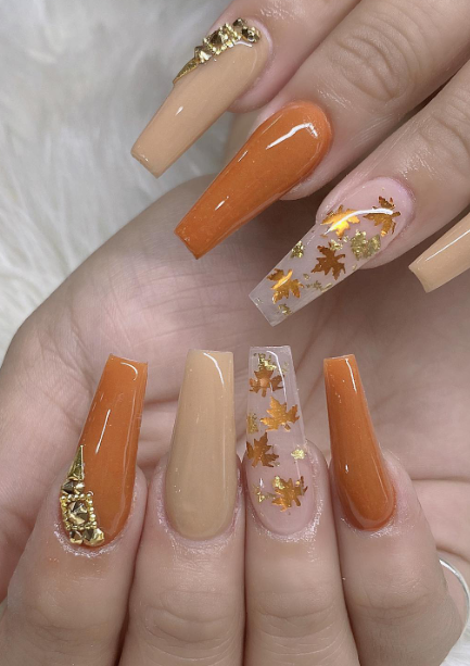 fall-leaf-nail-art.-fall-orange-and-beige-nails.-fall-nails-long-acrylic-coffin.
