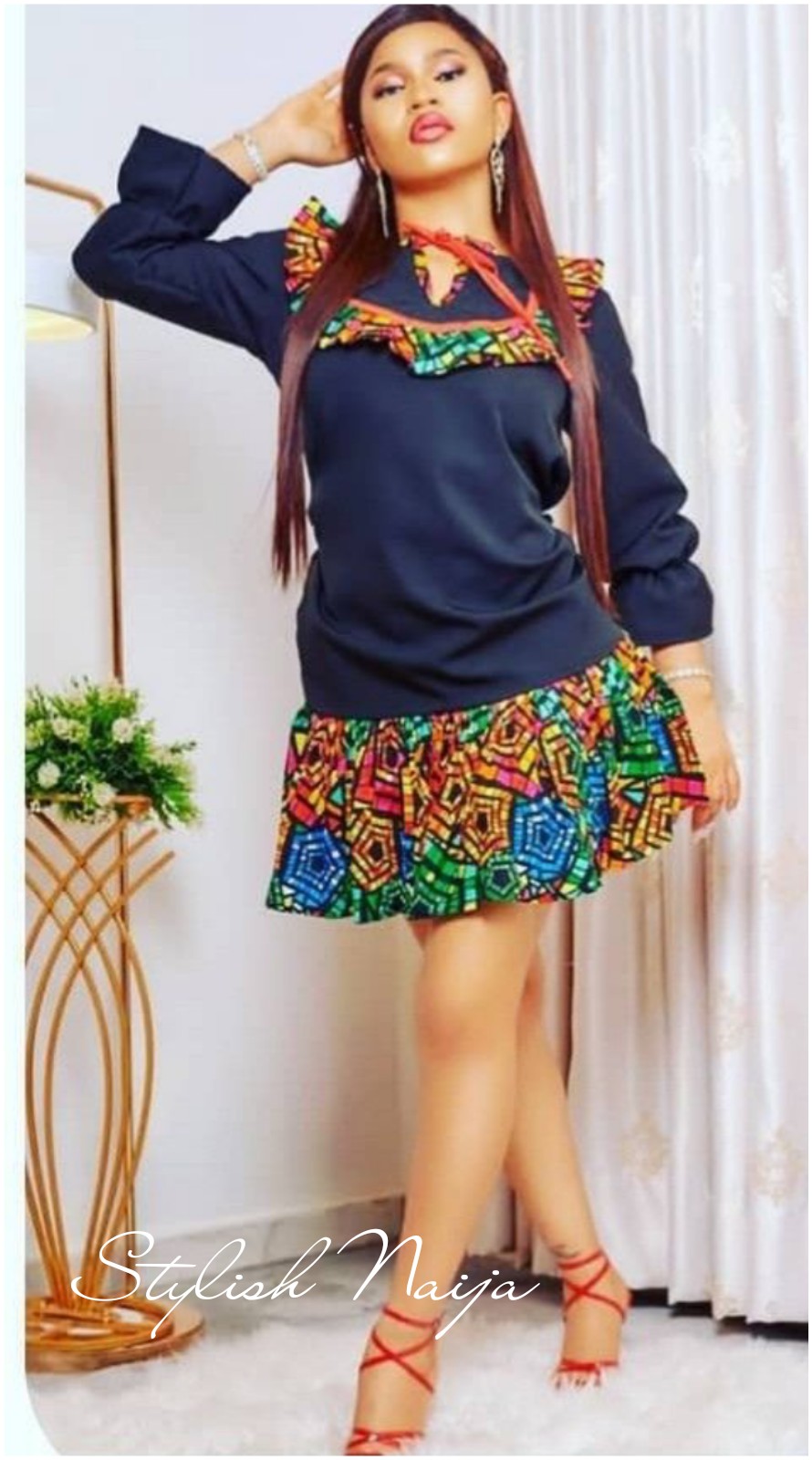 A plain-colored dress with Ankara trimmings along the hem, neckline, or sleeves offers a subtle yet captivating fusion. This style is perfect for those who appreciate minimal Ankara accents. ππ