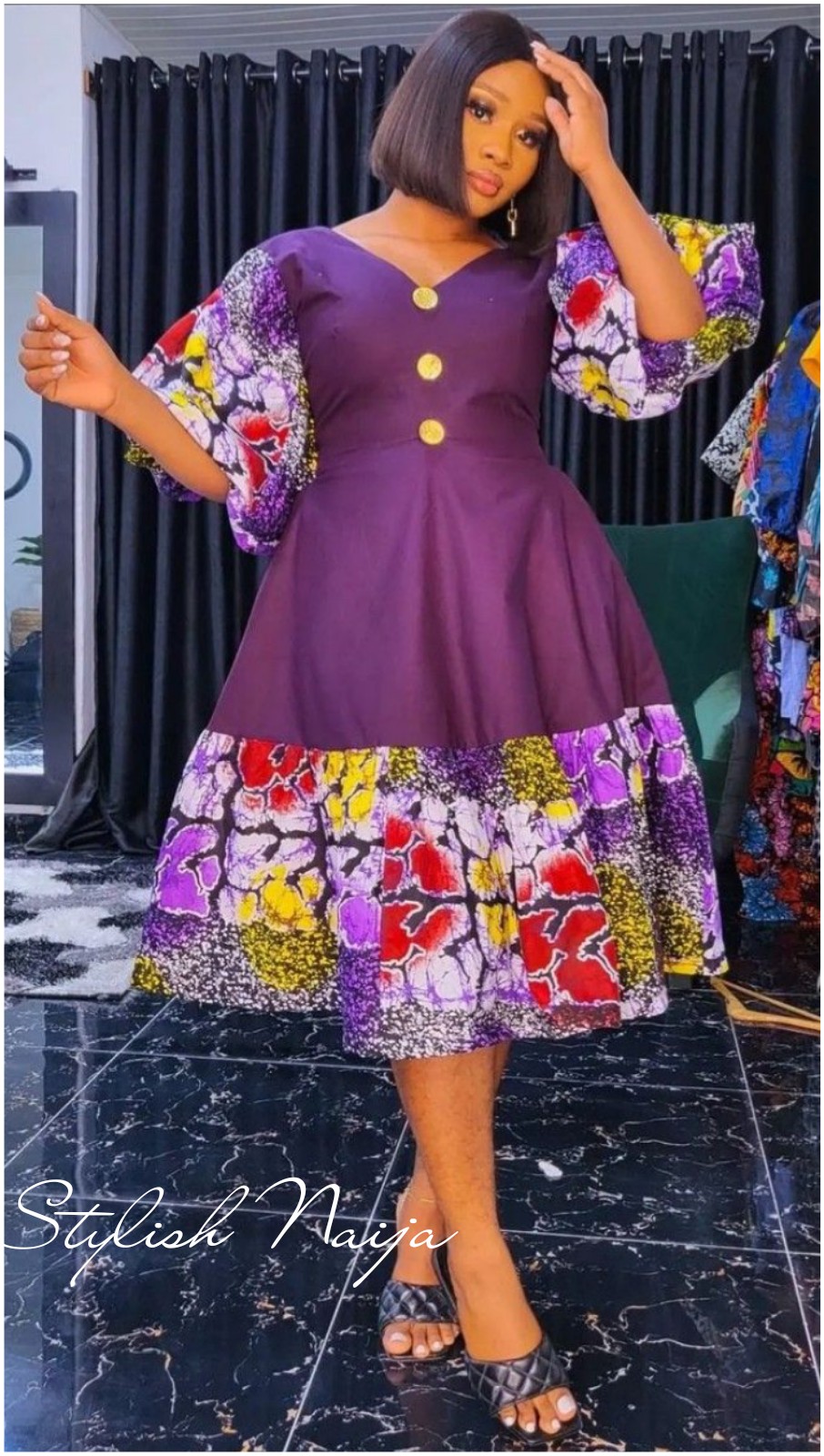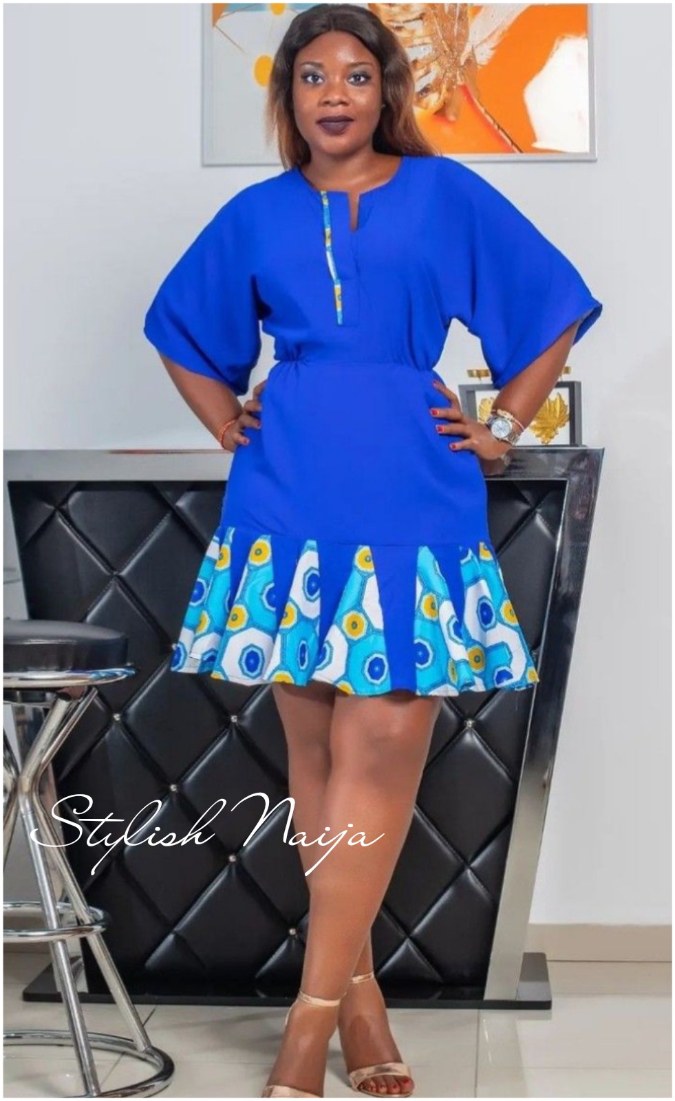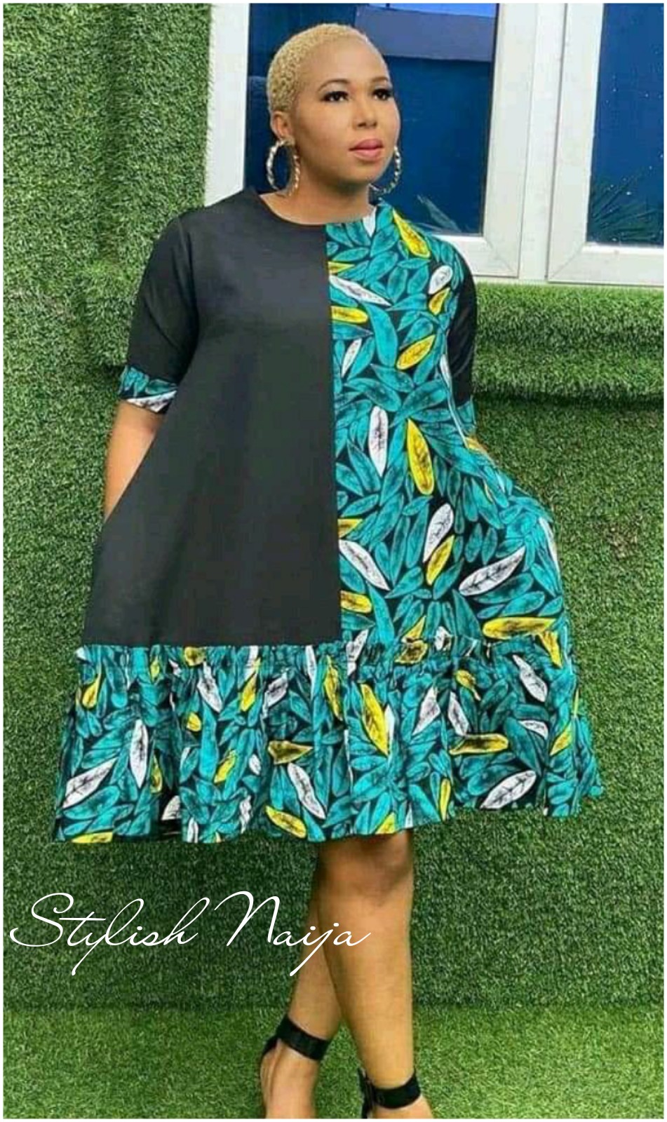 Create a unique look with a dress that’s half Ankara and half plain fabric. This daring style is perfect for fashion enthusiasts who love to stand out. π₯π