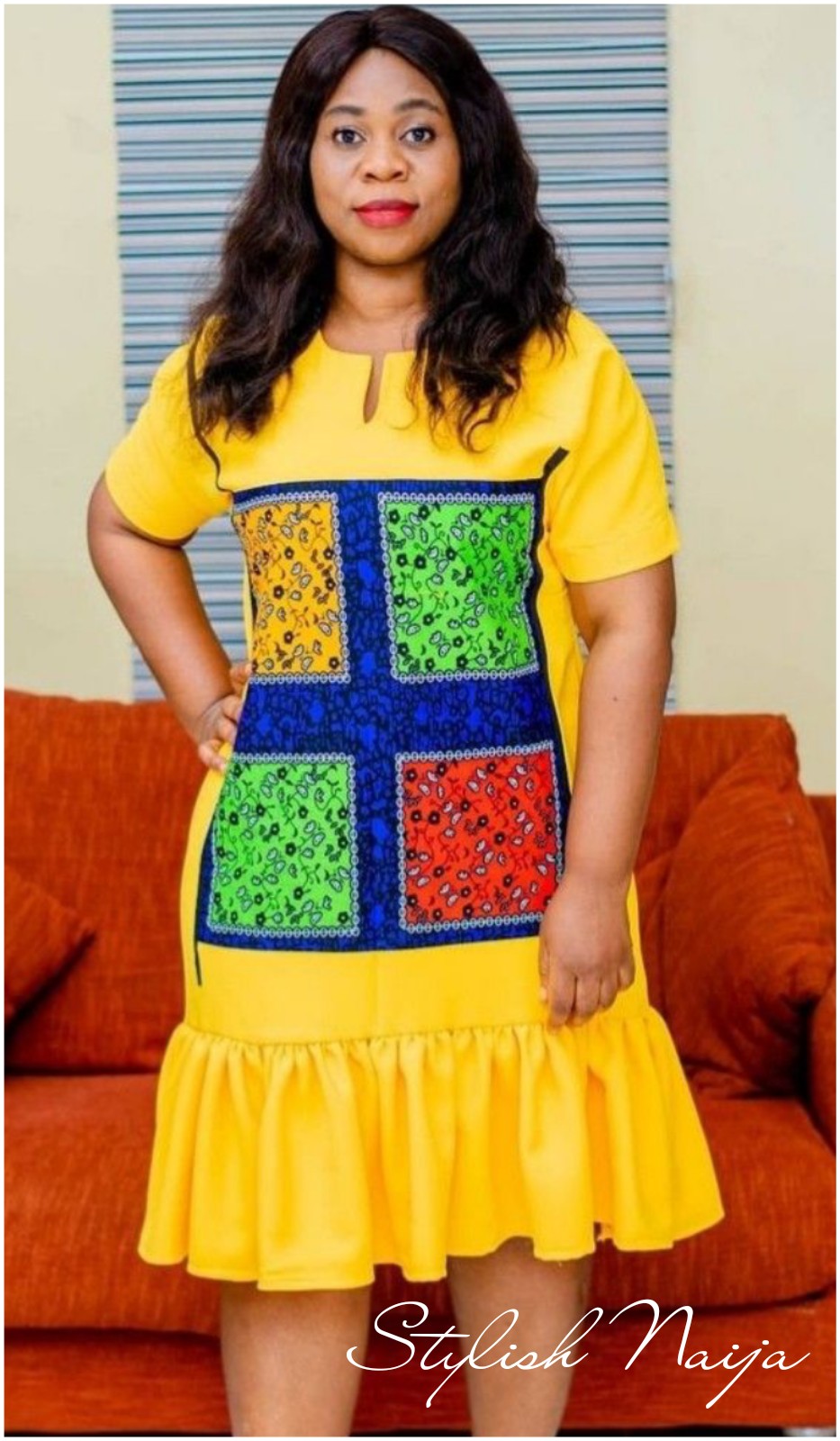 5. The Ankara-Trimmed Plain Dress