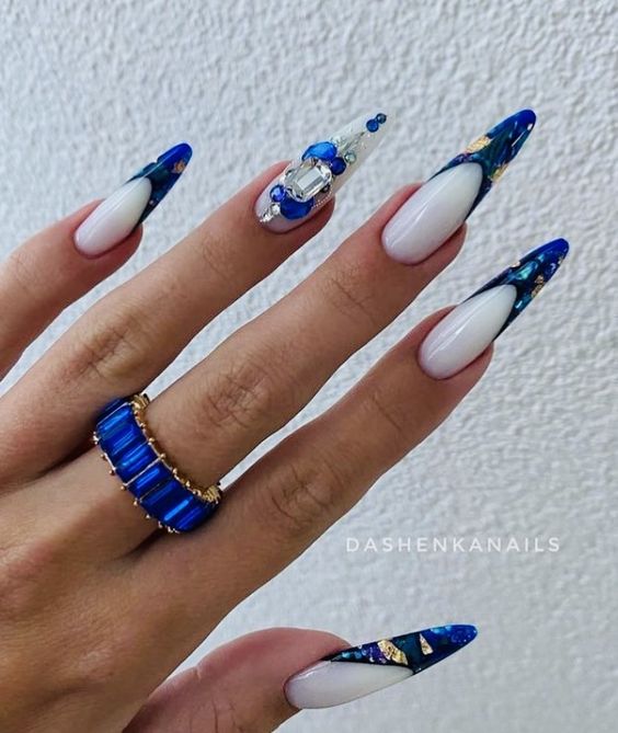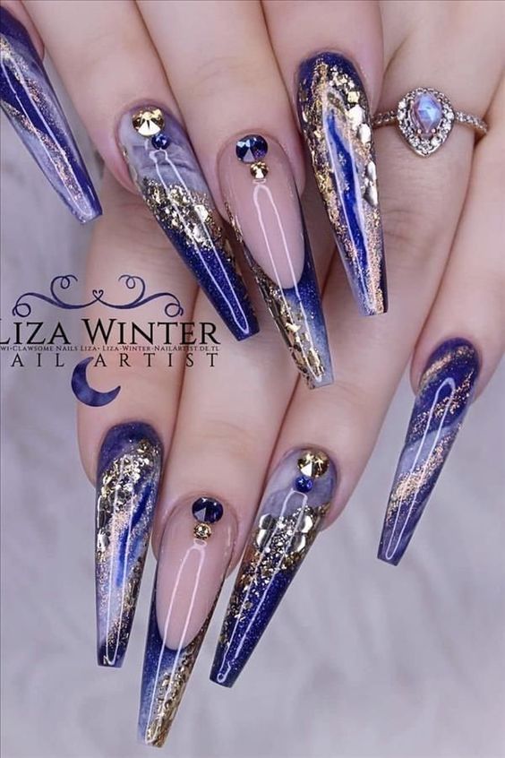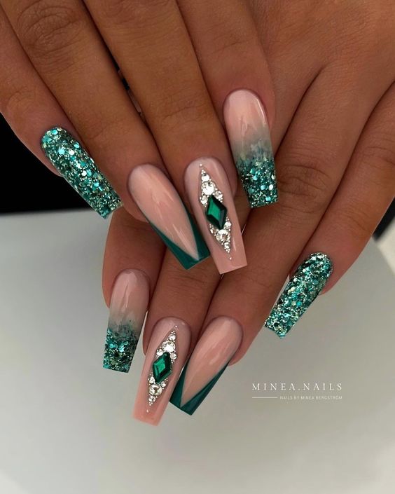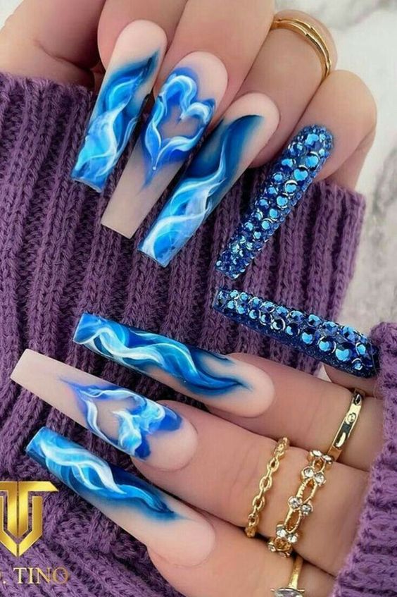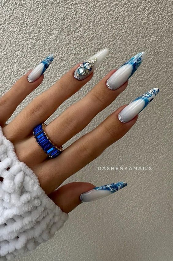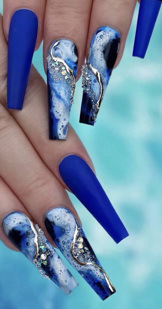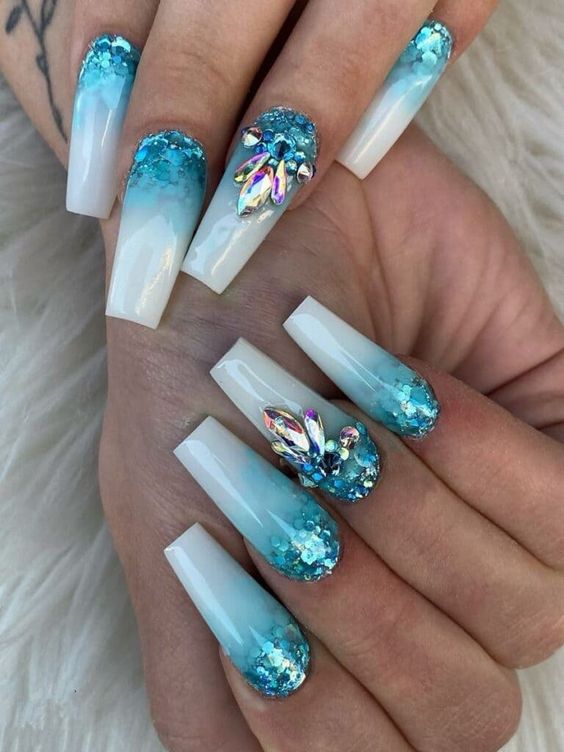 When winter rolls in, elevate the classic cyan coat with a touch of glam. Think silver, gold, metallic fibers, and glitter. If you’re one for some sparkle, crystals and sequins can add that dash of dazzle, making your nails a true statement.