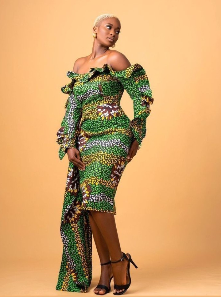 9. Off-Shoulder Midi Gown Make a statement with an off-shoulder Ankara midi gown that showcases your neckline and shoulders. This style is perfect for special occasions and celebrations.