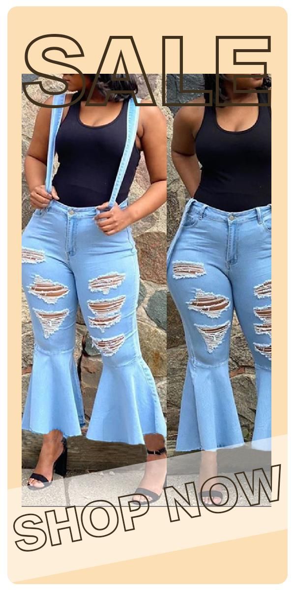 Fashion Casual Light Blue Ripped Denim Overalls-ZF2006031