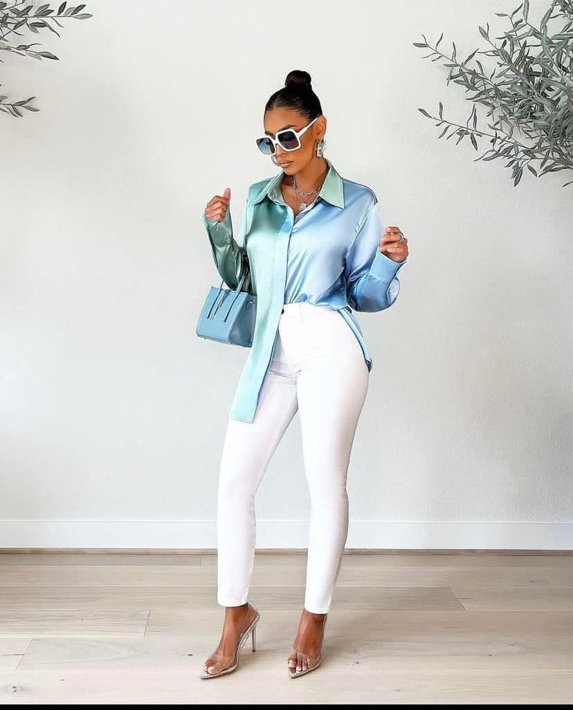 - Shoes: Heeled sandals or sophisticated pointed-toe heels.