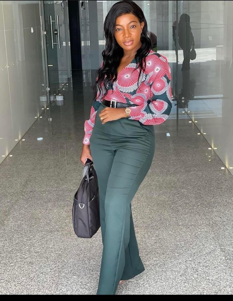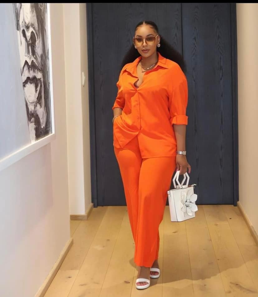 - Outfit: An elegant gown or a tailored jumpsuit.