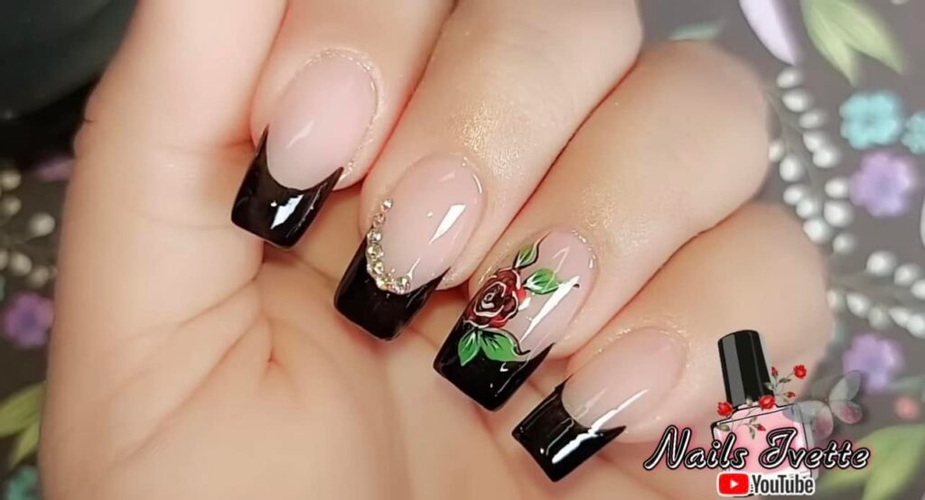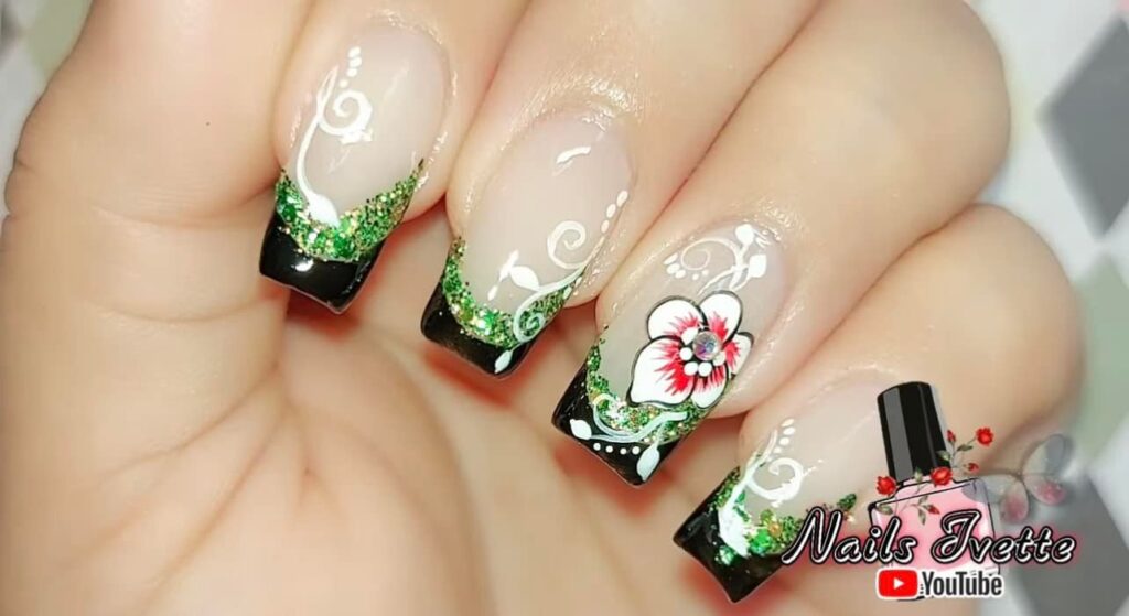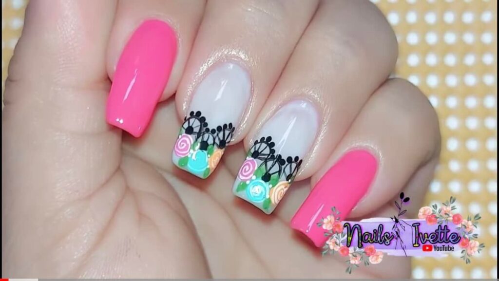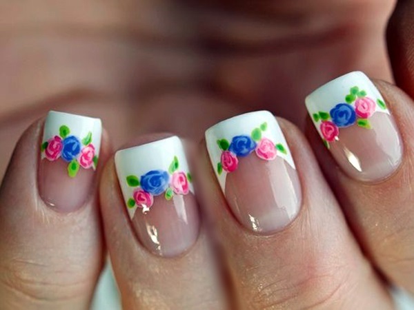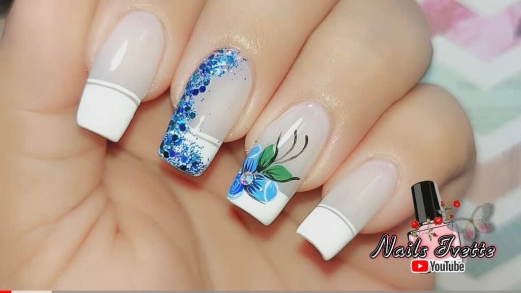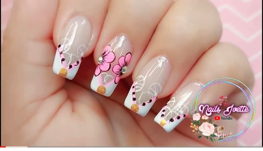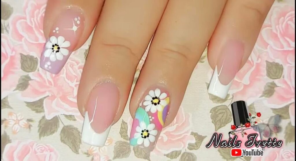 2. Floral French Tips: Give the classic French manicure a floral twist by adding small flowers along the tips of your nails. Use contrasting colors to make the flowers stand out, or keep it subtle with soft pastel shades.