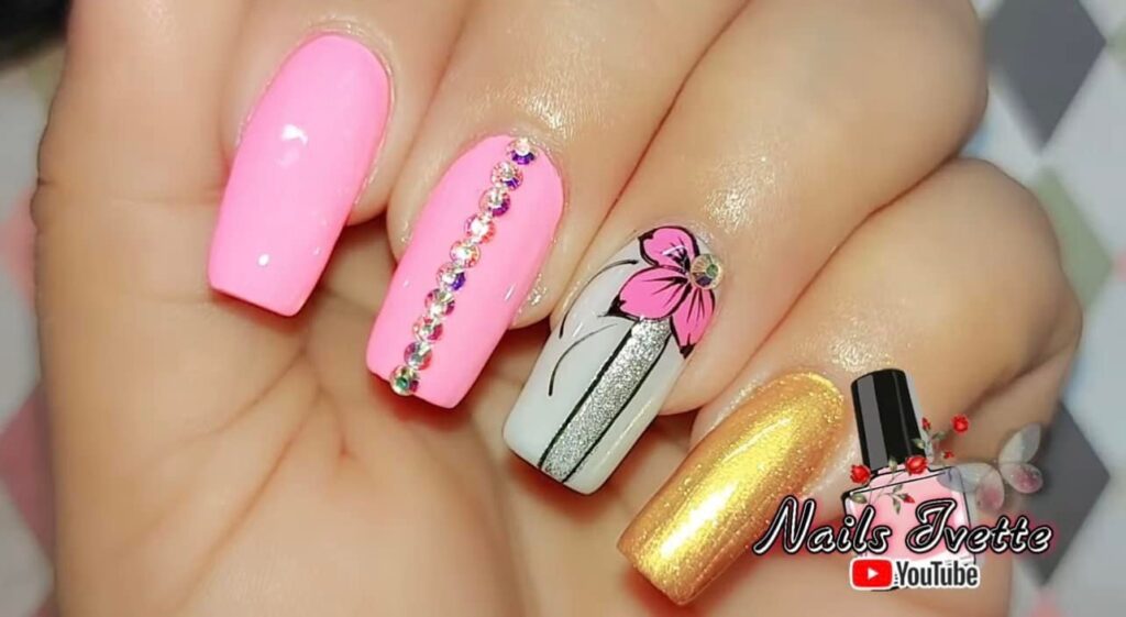 4. 3D Floral Accents: Add a three-dimensional touch to your nails by incorporating small flower embellishments. These can be either pre-made 3D nail art decorations or handmade flowers created using nail gels or acrylic powders. Apply them strategically on one or more nails for an eye-catching look.