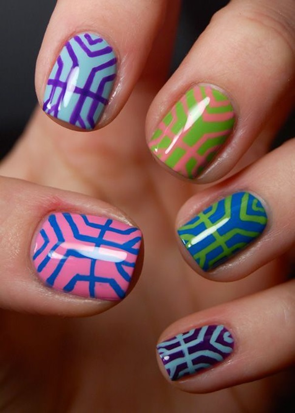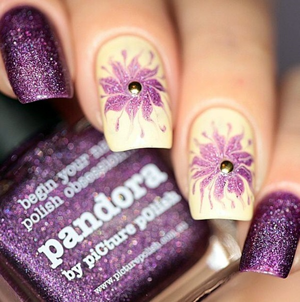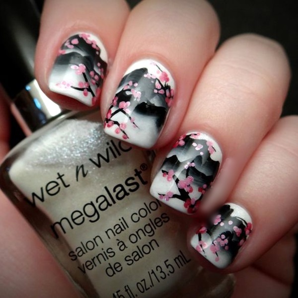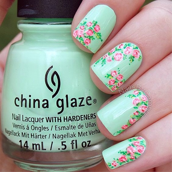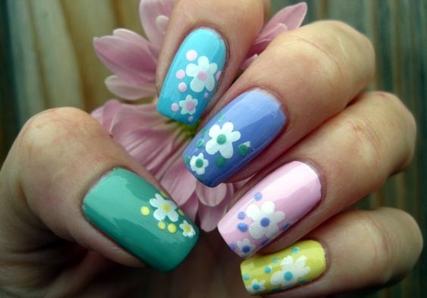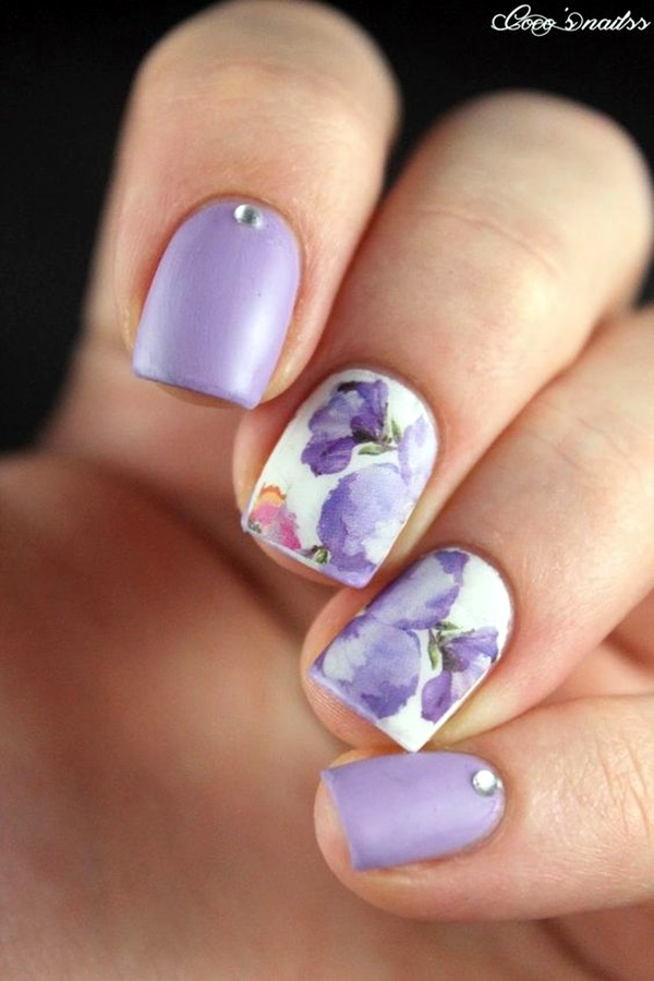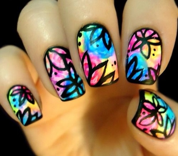 3. Watercolor Blooms: Create a watercolor effect by blending different shades of nail polish to create soft, dreamy flower designs. Use a sponge or a thin brush to blend the colors together, and add details with a fine-tipped brush or dotting tool.