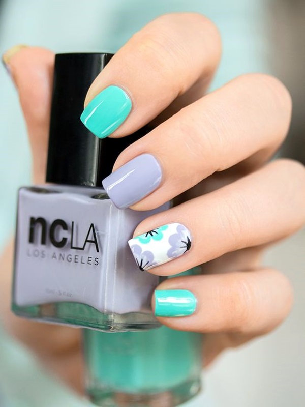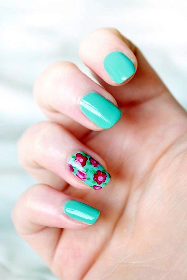 7. Floral Accent Nails: Create a statement by featuring floral designs on one or two accent nails while keeping the remaining nails a solid color. This allows the flowers to stand out and adds a touch of elegance to your manicure.
