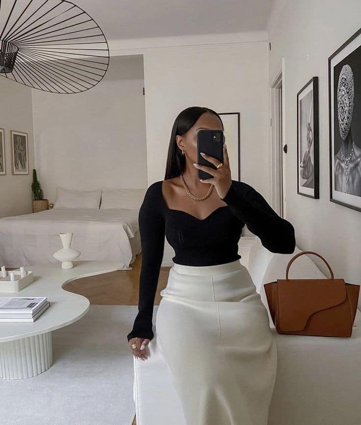 Previously seen as a more ‘conservative’ choice, the midi skirt has been reinvented with edgy cuts, bold patterns, and fabrics that drape dreamily, making it a favorite for both the office and the street.