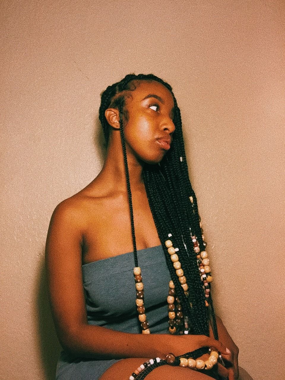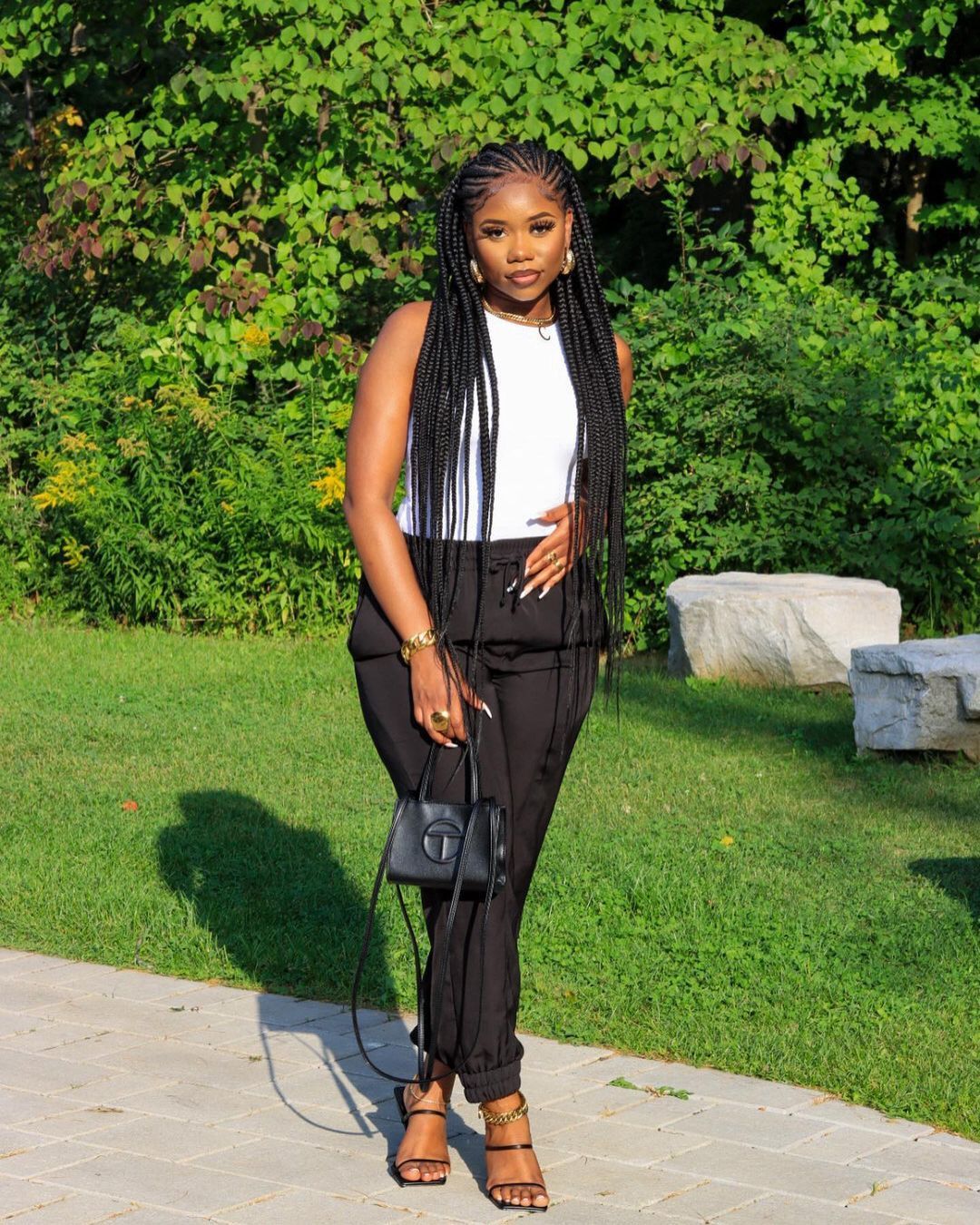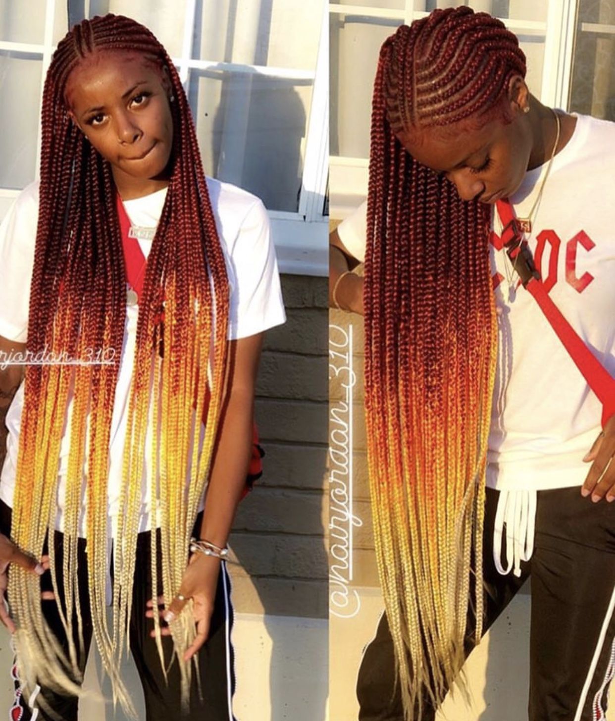 Divide your braids with a striking center parting, framing your face beautifully. This sophisticated style adds an element of symmetry and refinement.