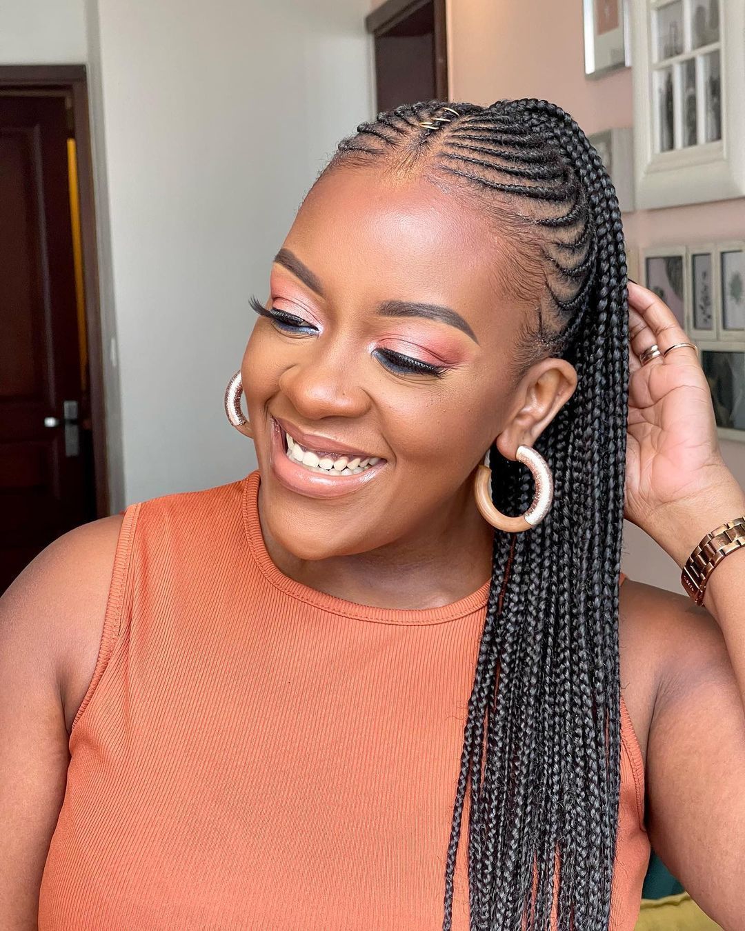 Gather your Fulani braids into a sleek and stylish ponytail. This chic and versatile look is perfect for both casual outings and special occasions.