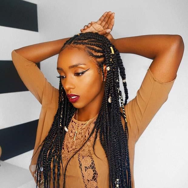 Incorporate geometric patterns and designs into your Fulani braids for a bold and artistic statement. This intricate style showcases the beauty of precision and creativity.