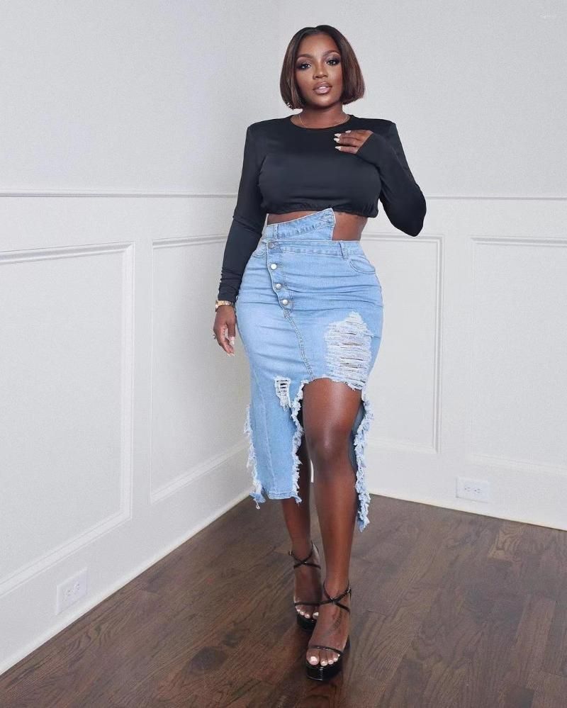Blue Slipped Denim Skirt: A Trendy Must-Have for Your Wardrobe