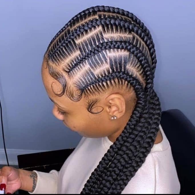 3. Curvy Cornrows: Add a playful touch with cornrows that curve and zig-zag, showcasing your unique style.