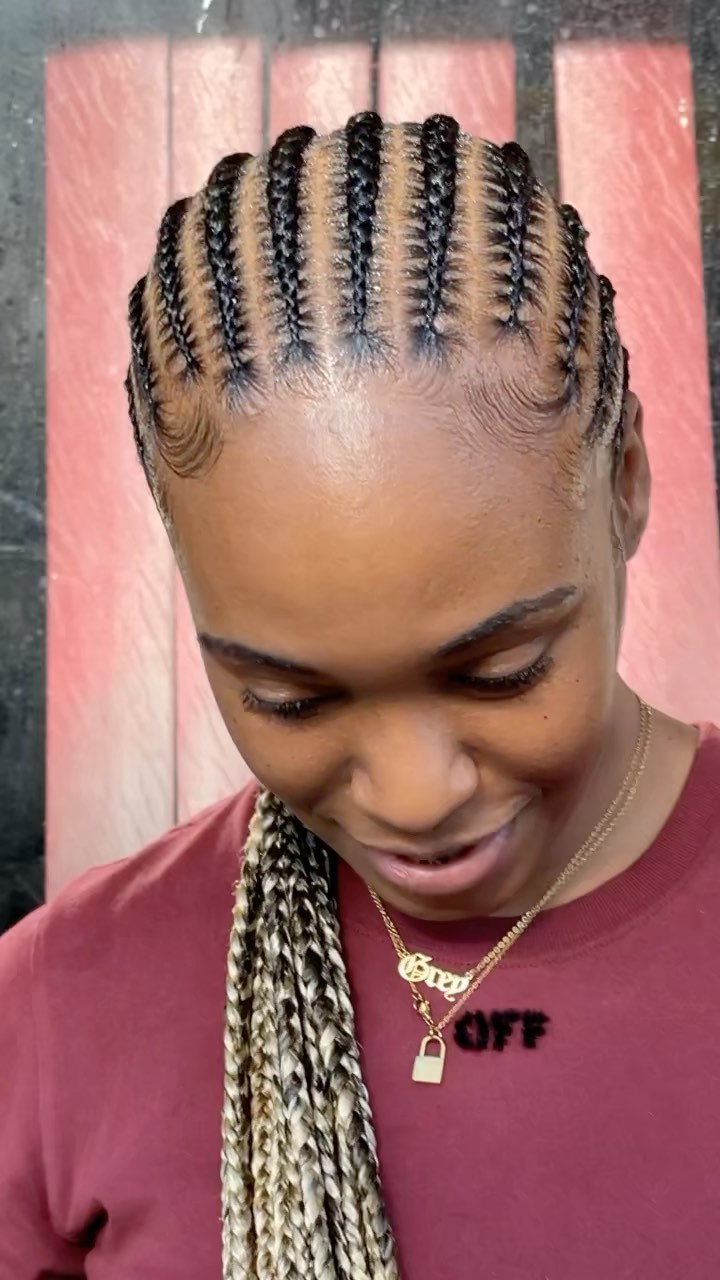 - Two-Toned Ghana Braids π¨π: Elevate your braids by incorporating two different hair colors. The contrasting shades can create a dynamic and vibrant look.