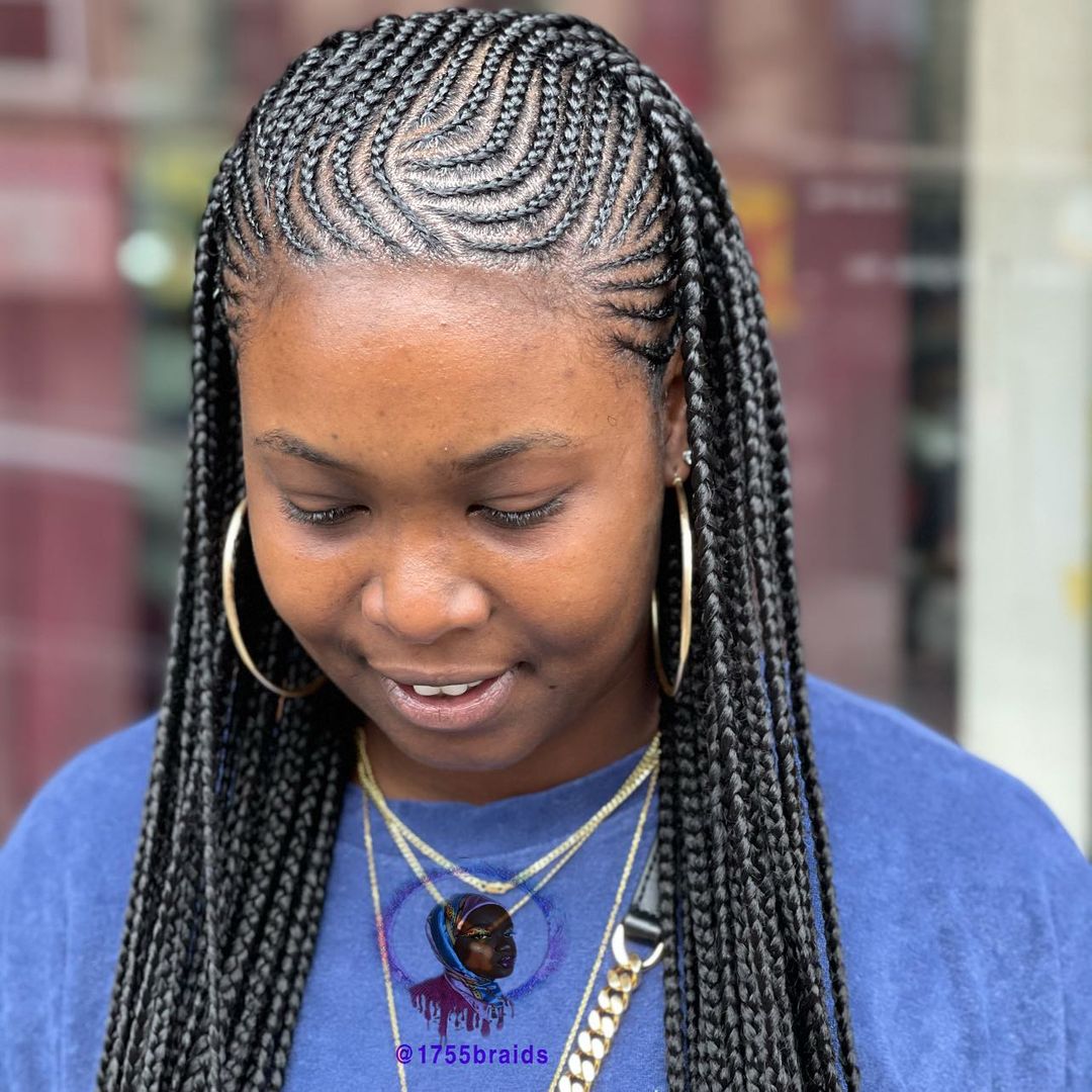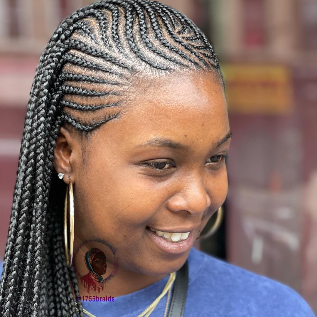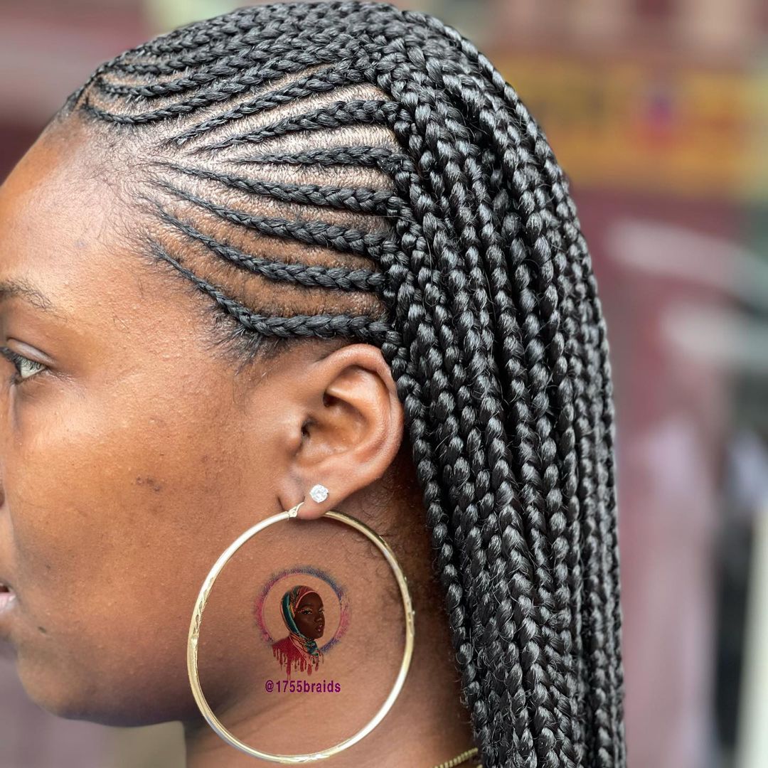 - Side-Swept Ghana Braids π¬οΈπ«: This asymmetrical style offers a fresh and modern take on the traditional straight-back look.