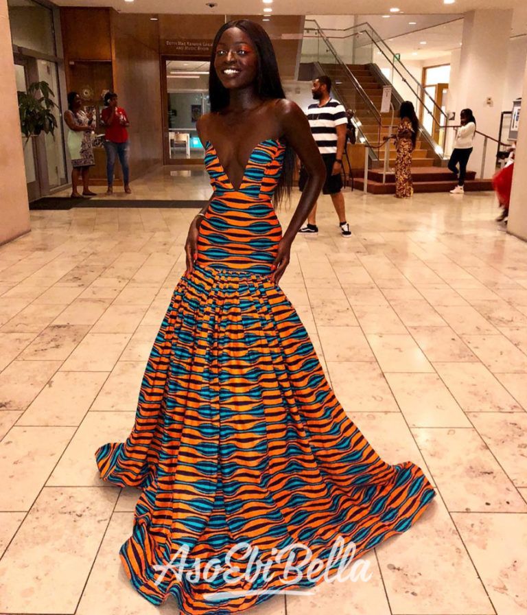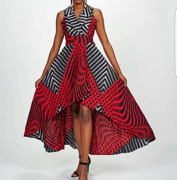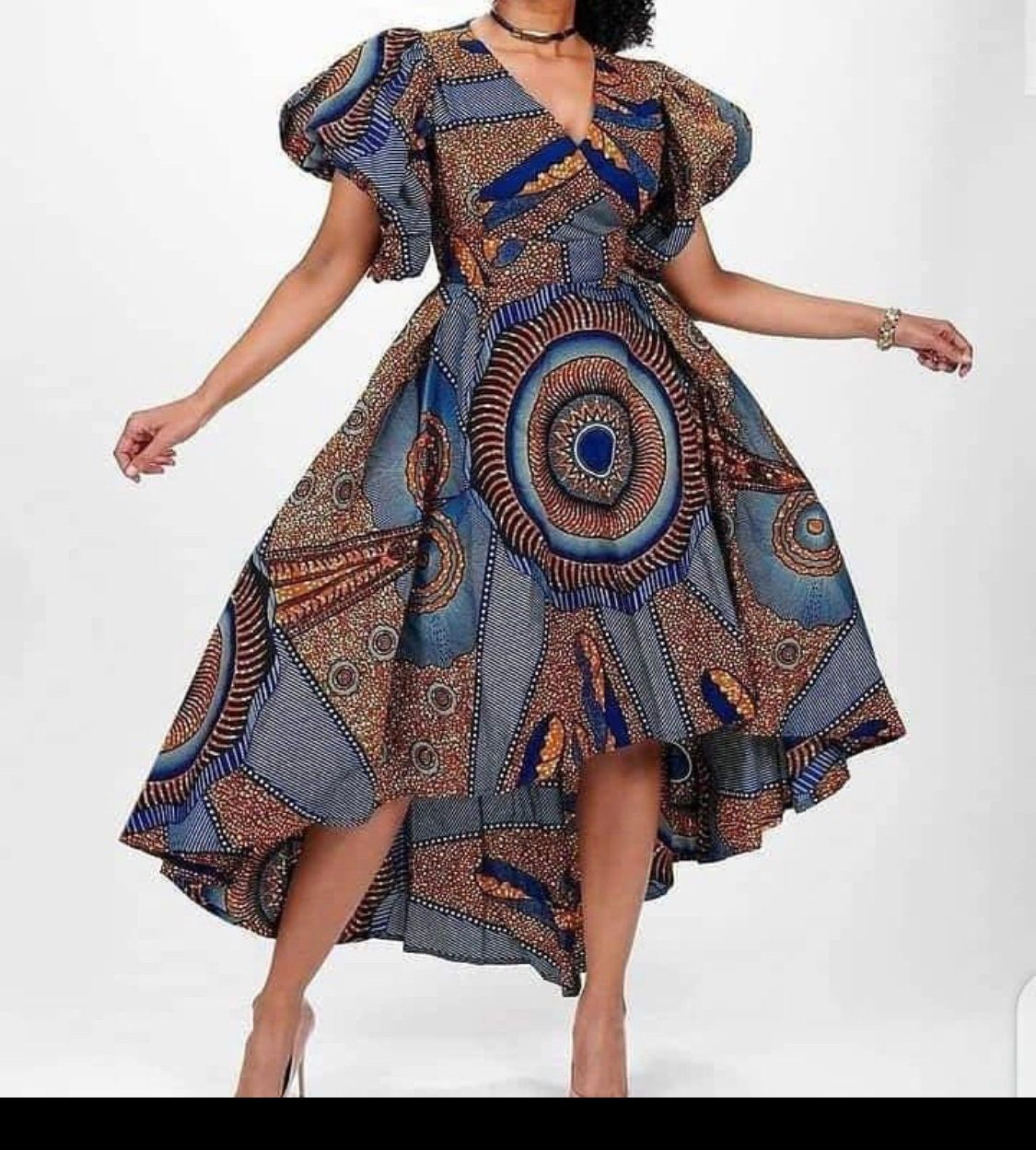 - Description: A high-low hemline Ankara dress offers a fashionable and dynamic look.