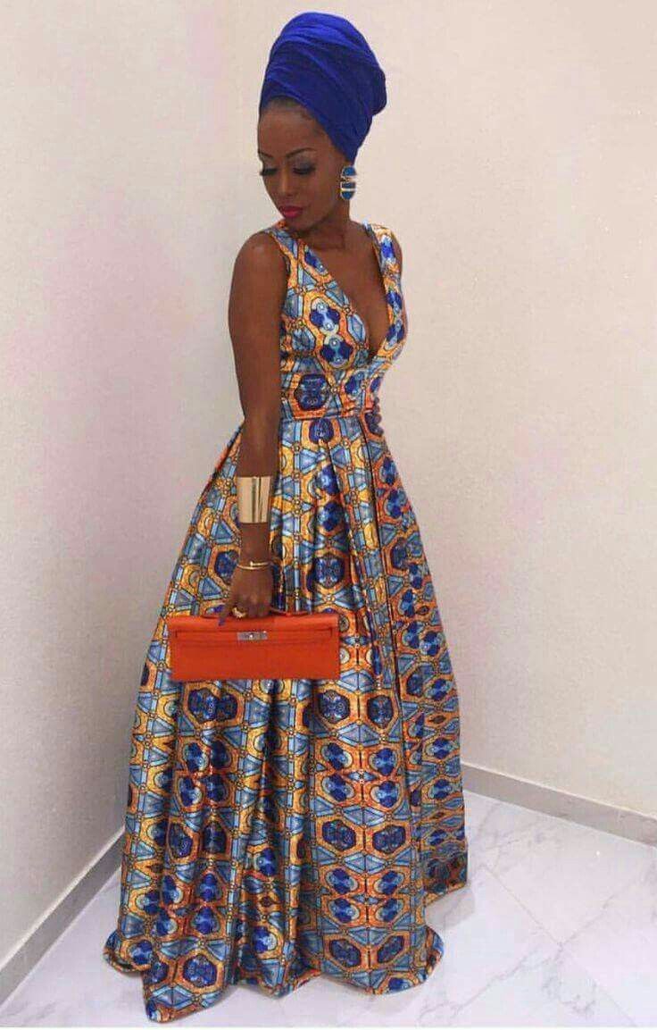 - Description: A flowing Ankara maxi dress with a high slit combines elegance with a touch of allure.