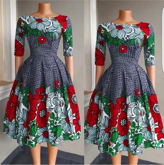 - Description: A skater-style Ankara dress with a flared skirt offers a youthful and playful appearance.