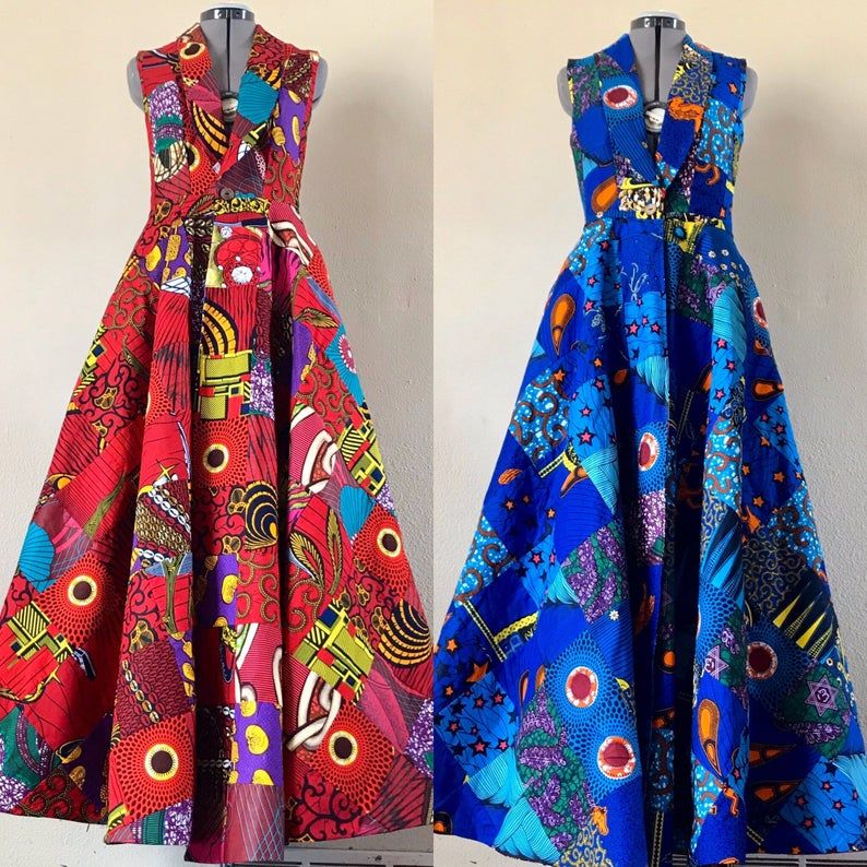 - Description: A tailored Ankara blazer paired with matching trousers creates a powerful and stylish suit.