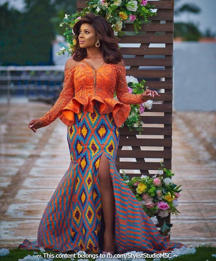Layer Kente with tulle or lace for a multi-dimensional look, perfect for events where you wish to make a grand entrance.