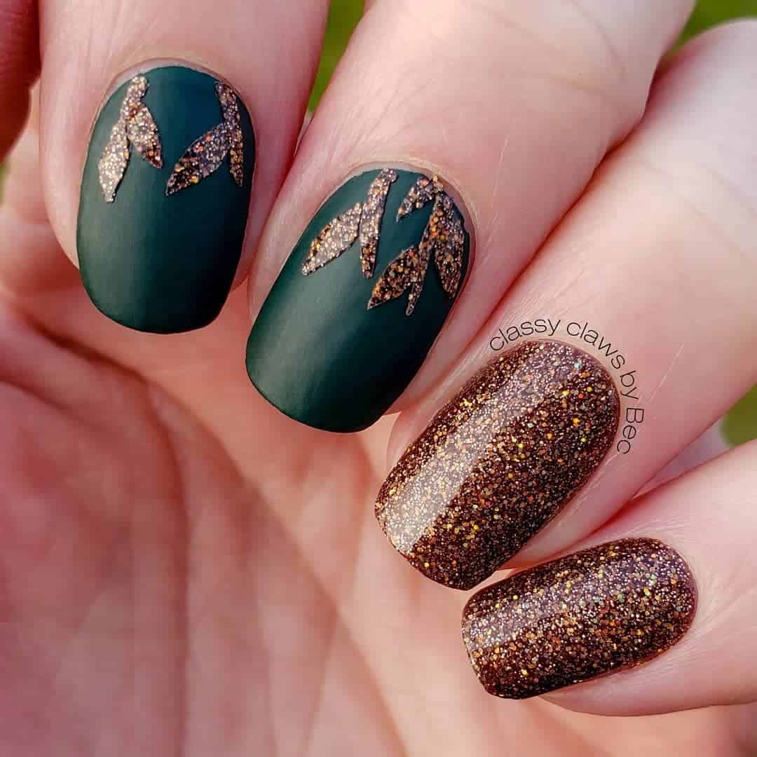 Green-Matte-Nails-With-Glitter