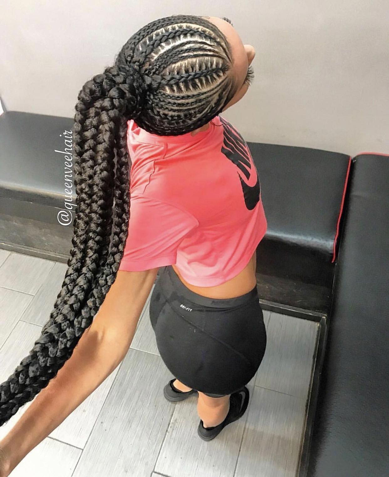 - Ghana Braids Ponytail: Create a high or low ponytail using the braids for a sleek and stylish appearance.